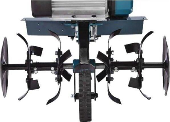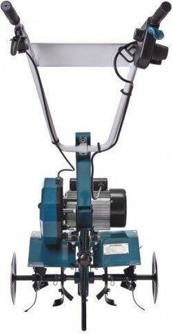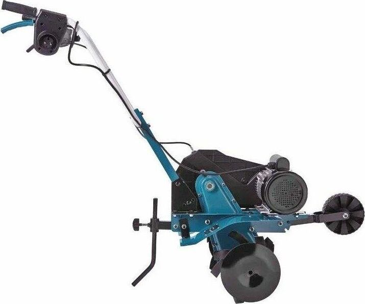 Комплект поставки: руководство пользователя, панель оператора, транспортировочное колесо, упаковка, электрический культиватор, фрезы - 2 шт., боковые диски - 2 шт., сошник