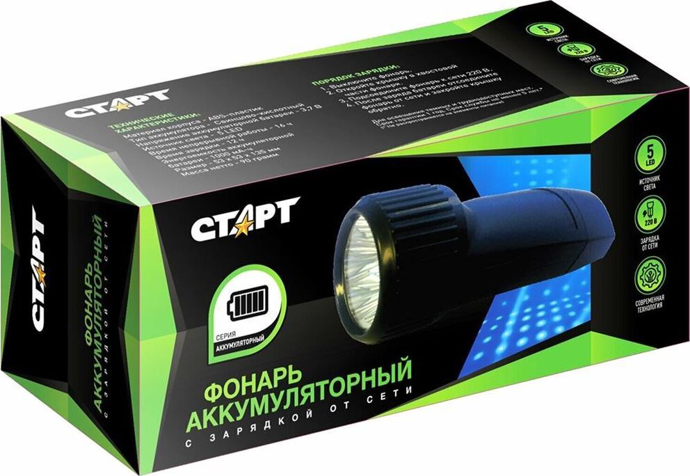 Источник света - 5 LED Аккумулятор - 3,7 Упаковка - цветная коробка Материал - ABS пластик Время работы - 16 часа