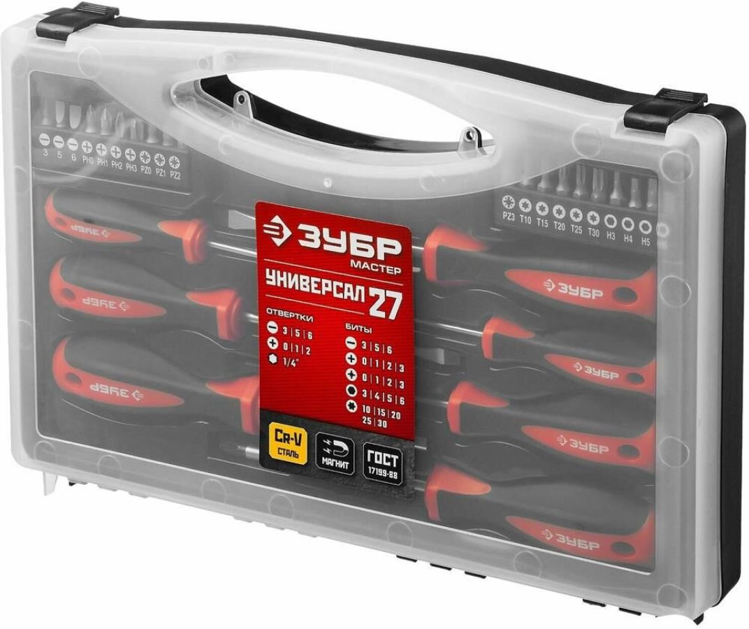 ЗУБР Набор отверток Мастер 25027 в компл.:27 предметов жесткий кейс в интернет магазине КорБТ
