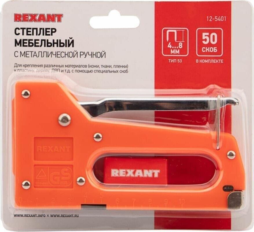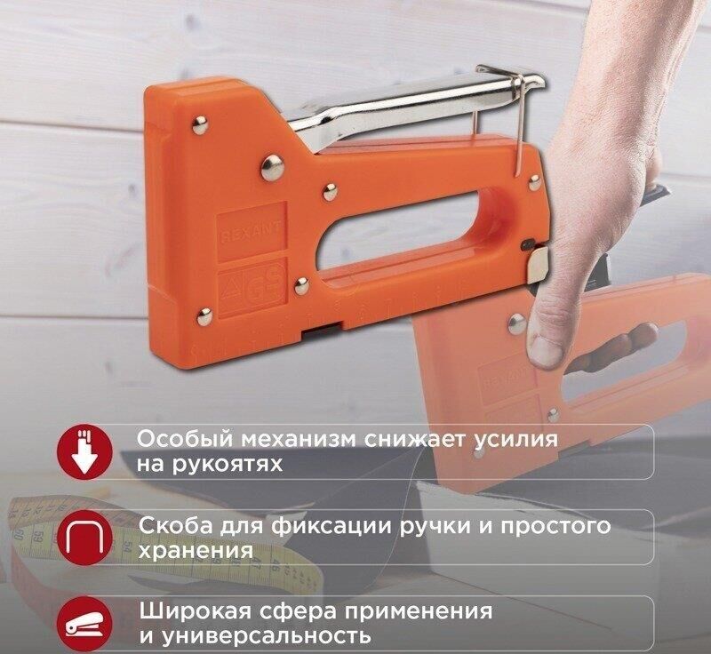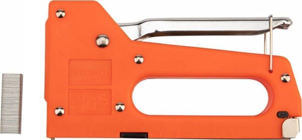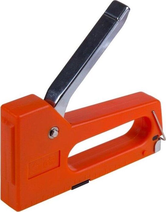Характеристики:; Материал: ABS-пластик, металл; Размеры используемых скоб: 4-8 мм; Тип скоб: прямоугольные ТИП 53; Артикулы подходящих скоб: 12-5511, 12-5512; Скоб в комплекте: 50 шт.; Преимущества:; Использован механизм, позволяющий снизить усилие на рукоятях; Выполнен из прочных долговечных материалов; Универсальность применения
