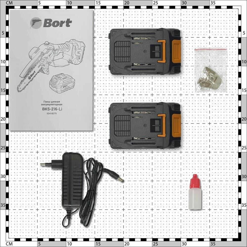 Комплект поставки: Зарядное устройство: 1; Батарея аккумуляторная: 2 , Емкость масляного бака: 0.03 л