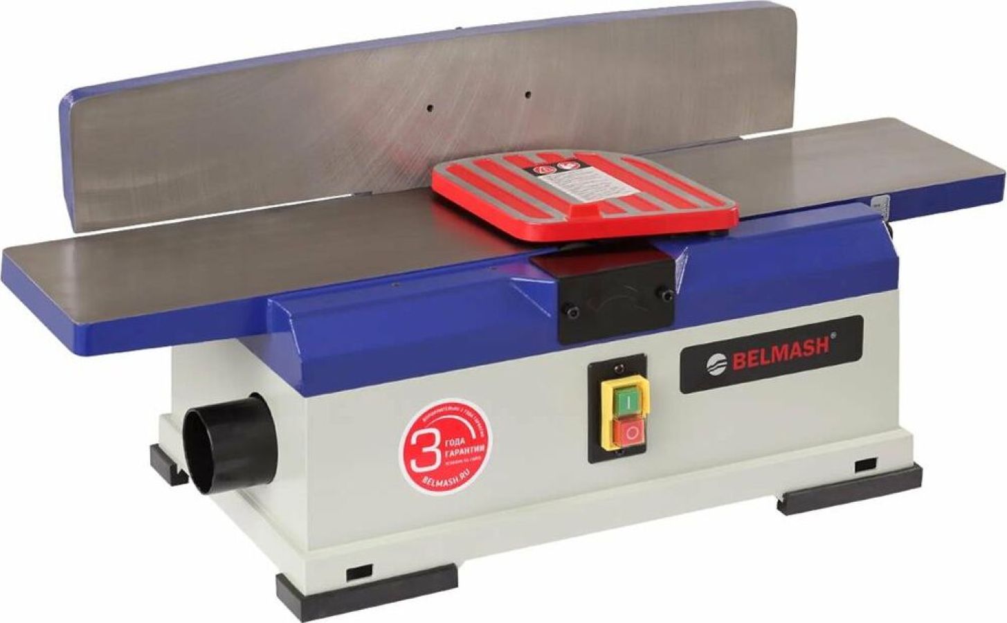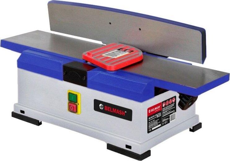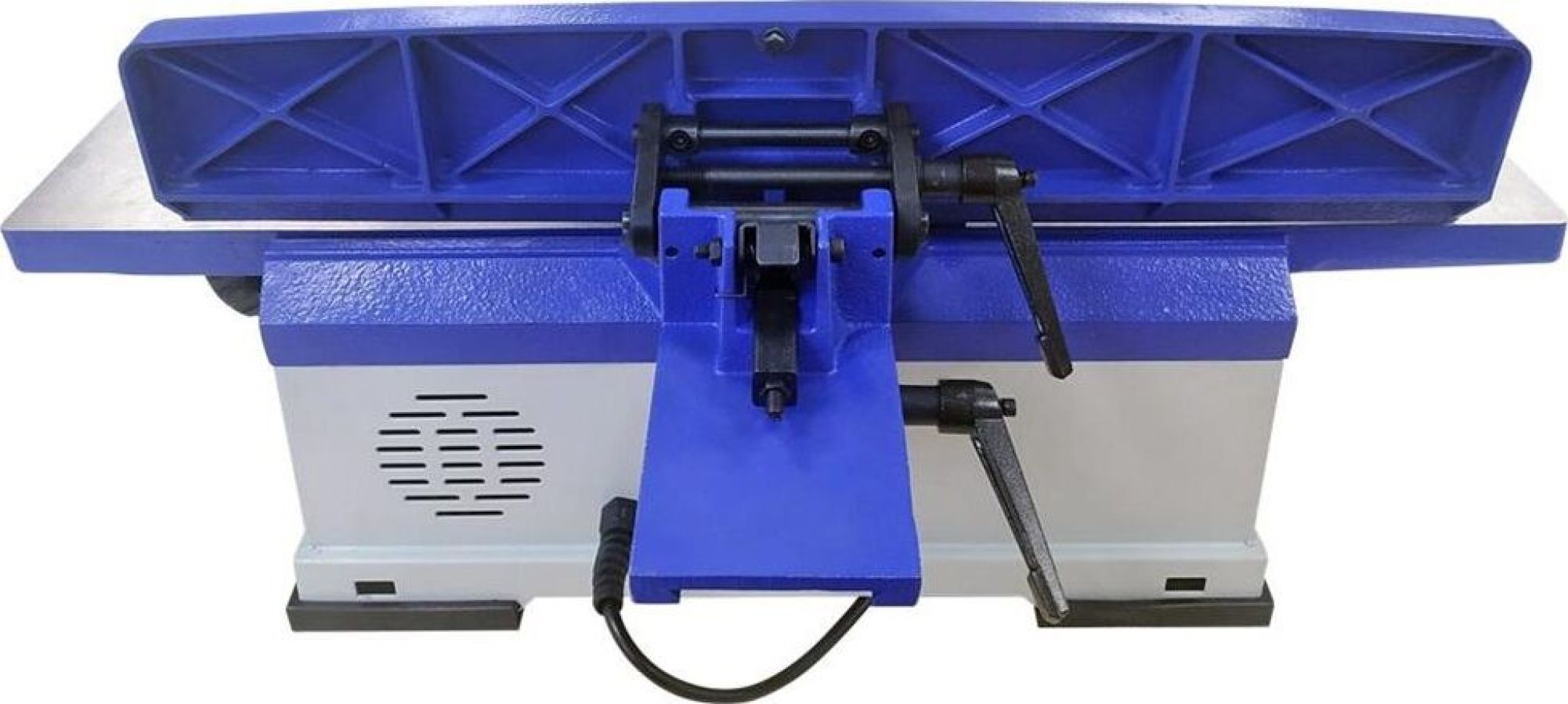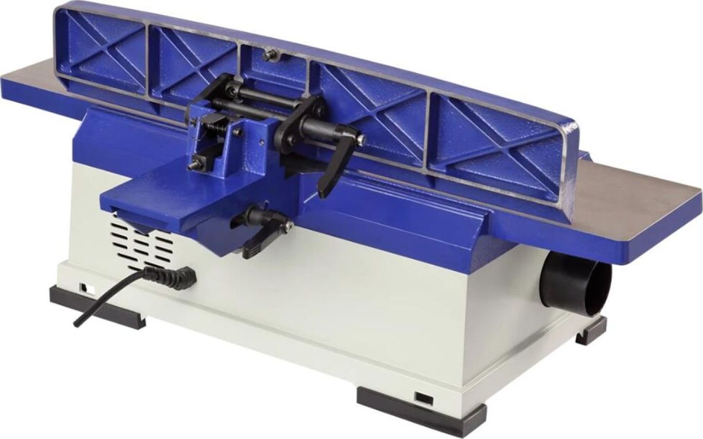 Станок фуговальный. Мощность 1250 Вт. Мощность на валу 735 Вт. Тип строгального вала с прямыми ножами. Напряжение питающей сети 230 В. Частота тока 50 Гц. Тип электродвигателя Коллекторный. Частота вращения ножевого вала 10000 об/мин. Максимальная ширина строгания 155 мм. Диапазон углов строгания с помощью параллельного упора -45-0-45°. Количество ножей на валу 2 шт. Размер ножей (Д х Ш х В) 158 х 22 х 1,8 мм. Максимальная глубина строгания 3 мм. Тип ремня Поликлиновой (170J / 140J). Диаметр режущего вала 50 мм. Тип передачи Ременная. Диаметр патрубка пыле/стружкоудаления 60,5 мм. Размер стружкосборника (Д х В) 350 х 725 мм. Материал рабочих столов Чугун. Длина подающего стола 343 мм. Длина приемного стола 345 мм. Размер параллельного упора (Д х В) 580 х 110 мм. Материал параллельного упора Чугун. Минимальная длина обрабатываемой заготовки 200 мм. Минимальная ширина обрабатываемой заготовки 20 мм. Общая длина строгальных столов 730 мм. Габаритный размер (Д х Ш х В) 1350 х 680 х 350 мм.
