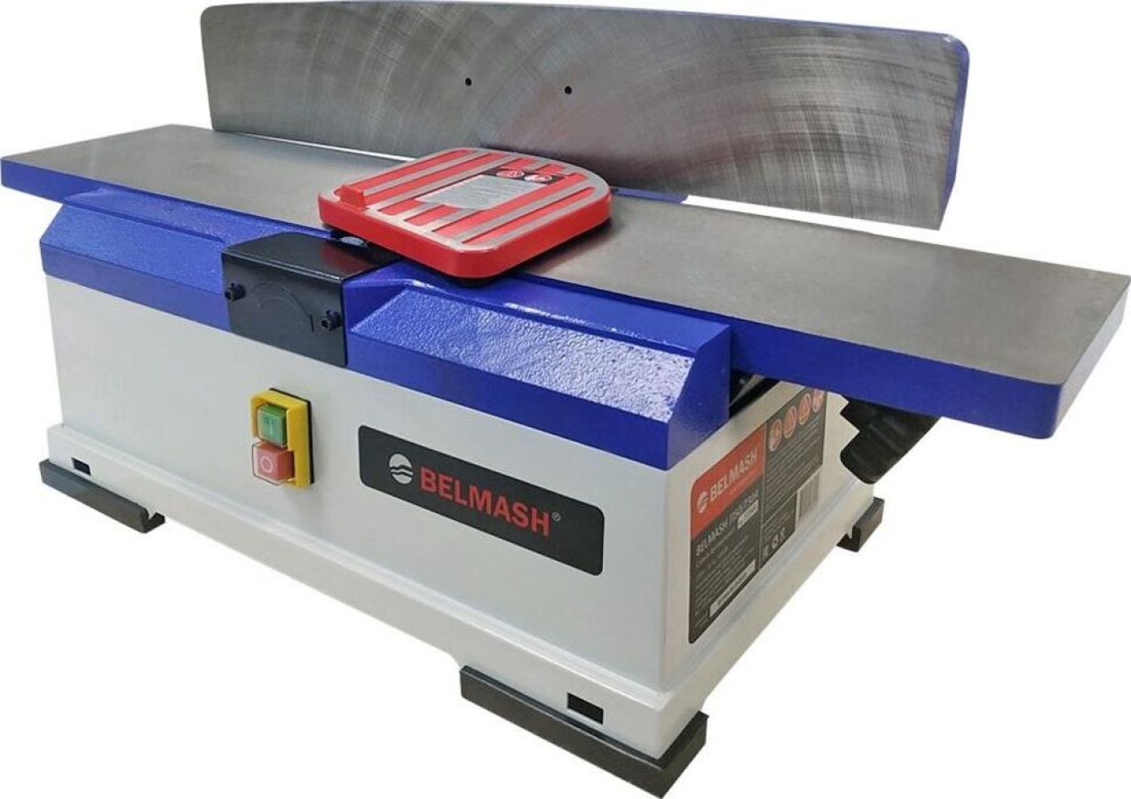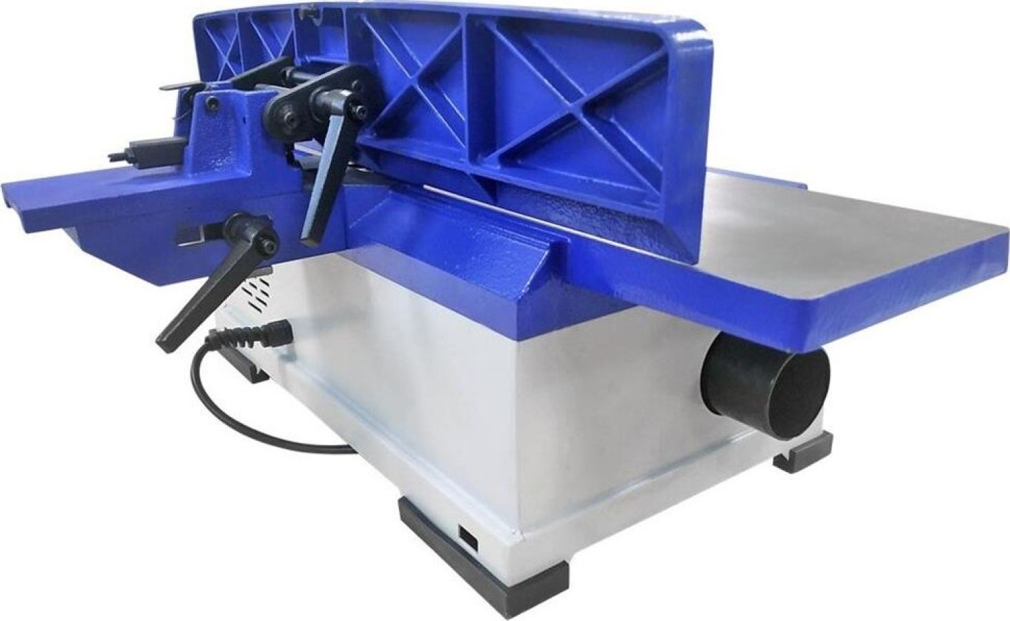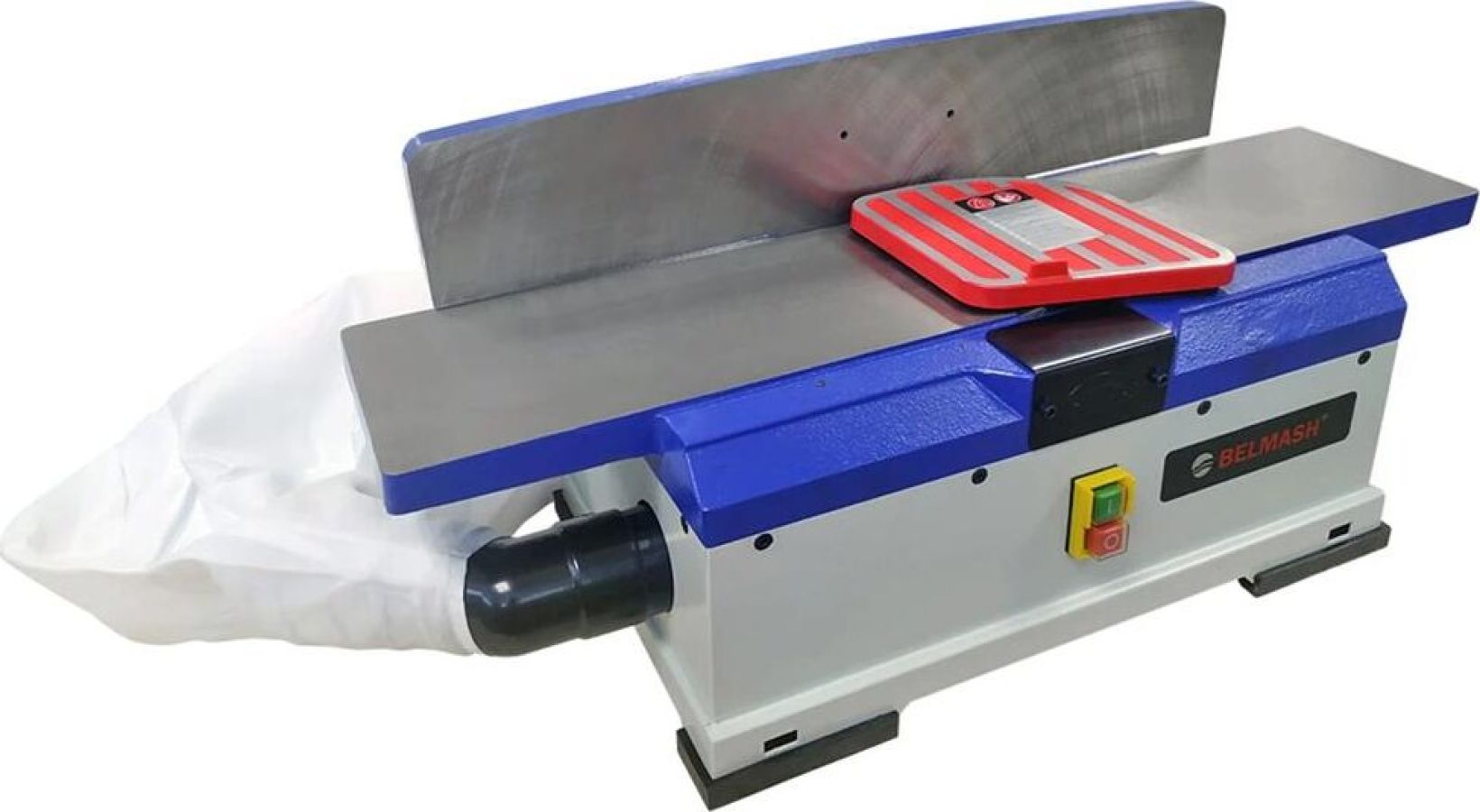 Станок фуговальный. Мощность 1250 Вт. Мощность на валу 735 Вт. Тип строгального вала с прямыми ножами. Напряжение питающей сети 230 В. Частота тока 50 Гц. Тип электродвигателя Коллекторный. Частота вращения ножевого вала 10000 об/мин. Максимальная ширина строгания 155 мм. Диапазон углов строгания с помощью параллельного упора -45-0-45°. Количество ножей на валу 2 шт. Размер ножей (Д х Ш х В) 158 х 22 х 1,8 мм. Максимальная глубина строгания 3 мм. Тип ремня Поликлиновой (170J / 140J). Диаметр режущего вала 50 мм. Тип передачи Ременная. Диаметр патрубка пыле/стружкоудаления 60,5 мм. Размер стружкосборника (Д х В) 350 х 725 мм. Материал рабочих столов Чугун. Длина подающего стола 343 мм. Длина приемного стола 345 мм. Размер параллельного упора (Д х В) 580 х 110 мм. Материал параллельного упора Чугун. Минимальная длина обрабатываемой заготовки 200 мм. Минимальная ширина обрабатываемой заготовки 20 мм. Общая длина строгальных столов 730 мм. Габаритный размер (Д х Ш х В) 1350 х 680 х 350 мм.