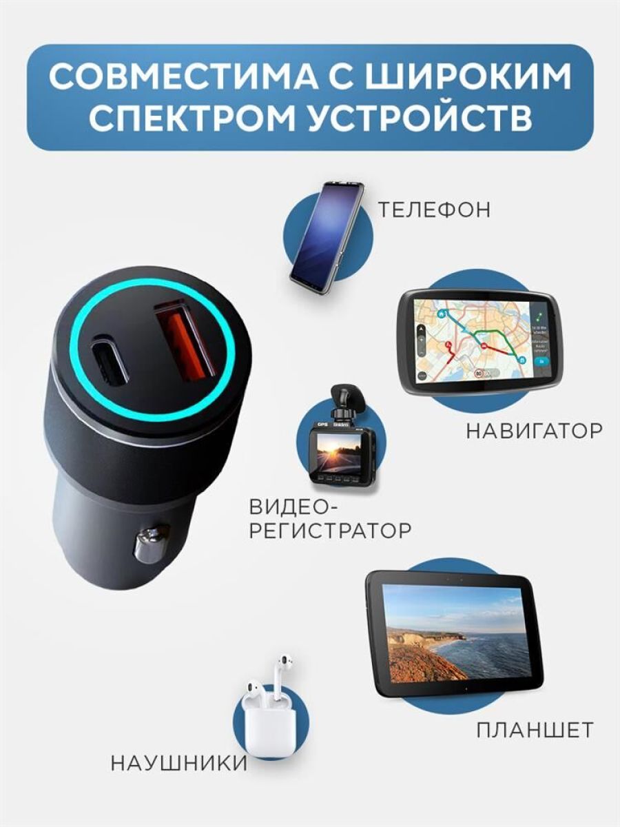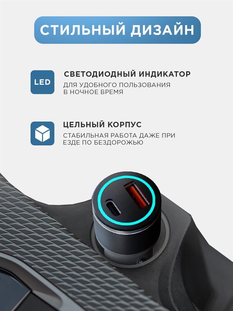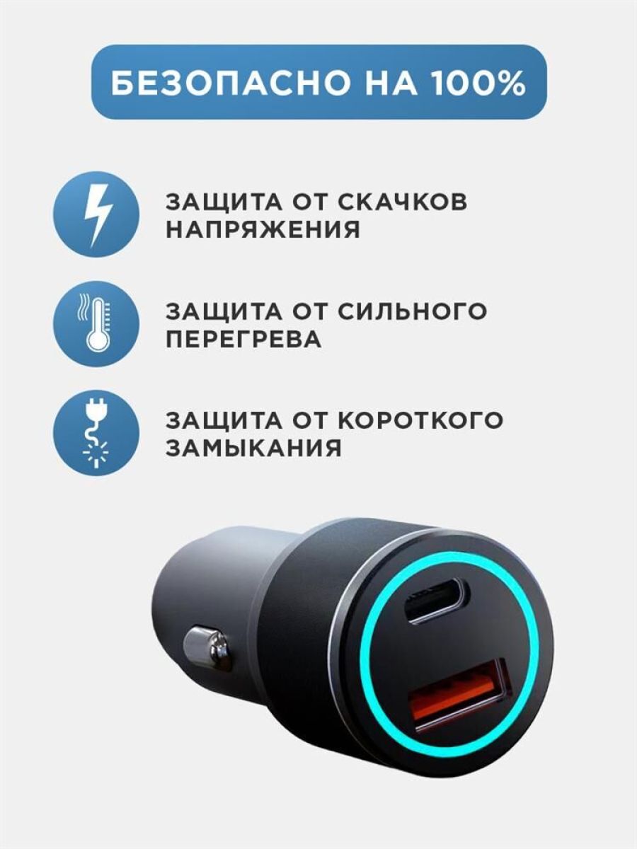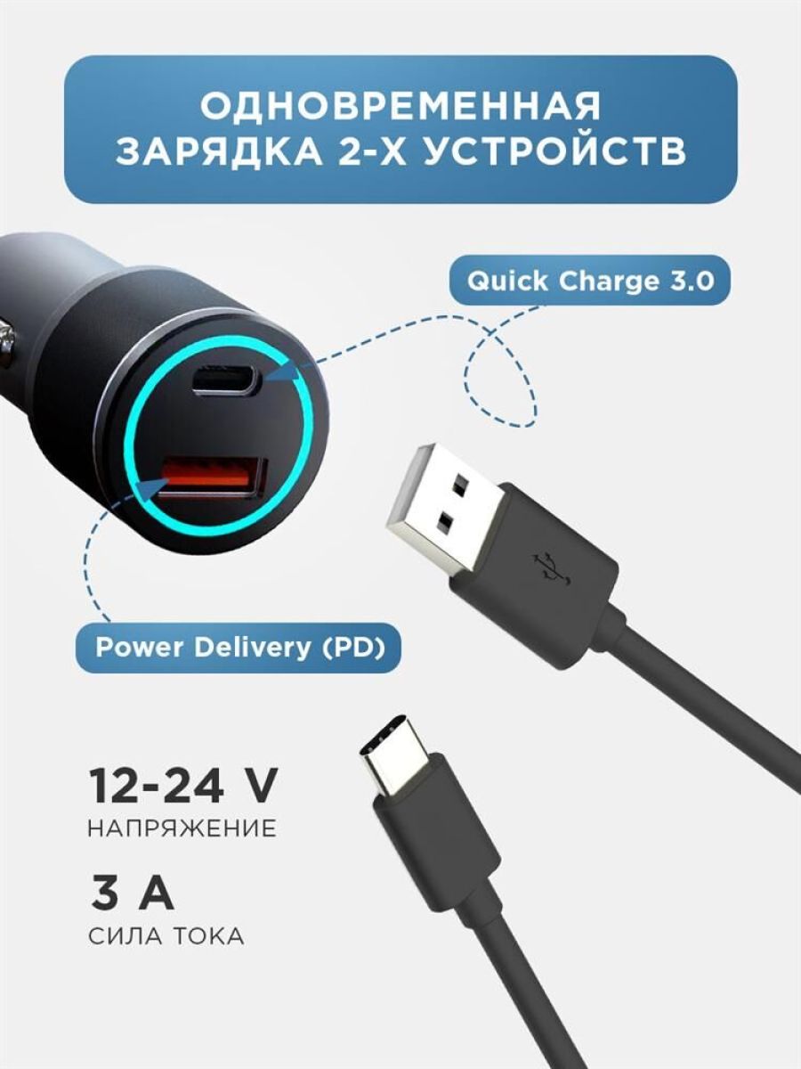 Автомобильное зарядное устройство c двумя портами USB-С и USB-С предназначено для зарядки электронных устройств в автомобиле. Суммарная мощность составляет 40 Вт, что позволяет заряжать несколько устройств одновременно. Разъемы поддерживают стандарт быстрой зарядки Power Delivery. Автозарядка оснащена световой индикацией, которая обеспечивает удобство использования в темное время суток. Зарядное устройство выполнено из прочного пластика, что гарантирует долгий срок службы. Изделие оснащено многоуровневой защитой от перенапряжения, короткого замыкания и перегрева.
