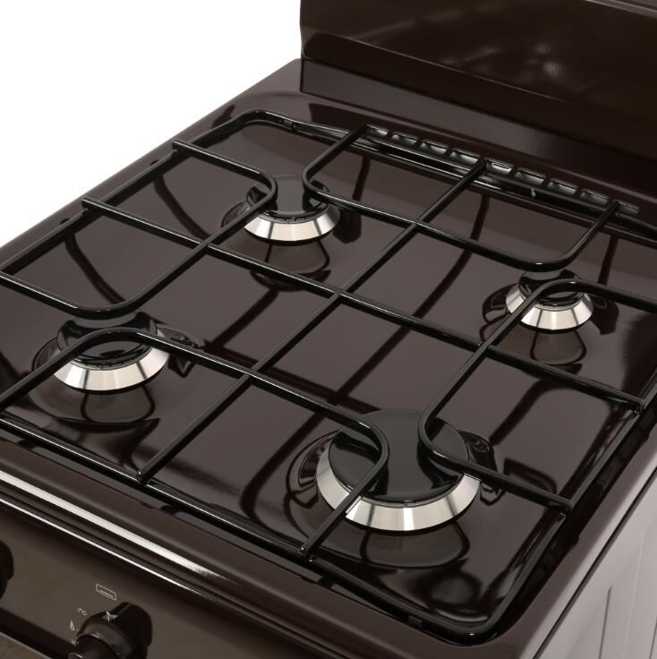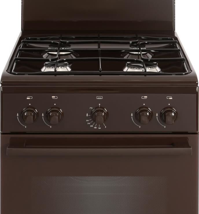 Габариты ШхГхВ, см: 50х58,5х85; Объем духового шкафа, л: 52; Тип очистки: Гидролизная; Тип подключения: Газовый; Количество зон приготовления: 4; Цвет модели: Коричневый; Материал варочной поверхности: Эмаль; Материал решеток варочной поверхности: Сталь; Крышка плиты: Щиток; Тип направляющих духового шкафа: Штампованные; Внутреннее покрытие духового шкафа: Эмаль легкой очистки SMART CERAMIC; Количество стекол в дверце духового шкафа: 2; Ящик для посуды и принадлежностей: Откидная крышка; Контроль температуры духового шкафа: Кран с безопасностью; Нижний нагрев; Жаровня: 1; Регулировочные ножки; Комплект сменных сопел; Противень: 1; Решетка варочной поверхности: 1; Решетка духового шкафа: 1; Диапазон номинального напряжения сети, В: 220-230; Номинальная частота сети, Гц: 50; Основная горелка духового шкафа, Вт: 2350