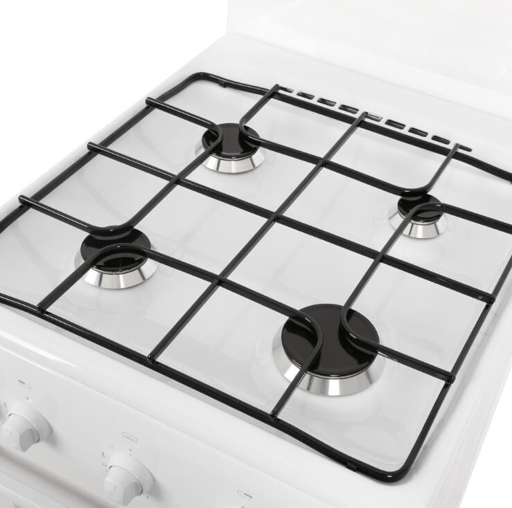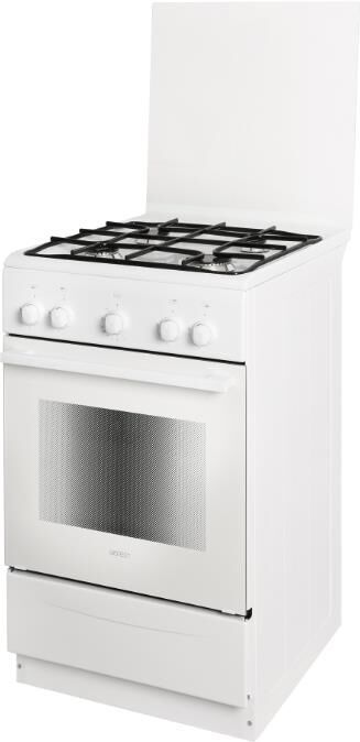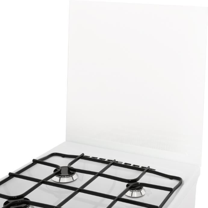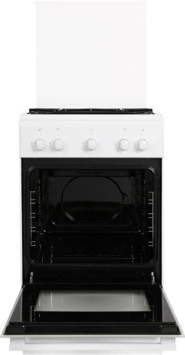 Габариты ШхГхВ, см: 50х58.5х85; Объем духового шкафа, л: 52; Тип очистки: Гидролизная; Цвет: Белый; Материал варочной поверхности: Эмаль; Материал решеток варочной поверхности: Сталь; Крышка плиты: Стеклянный щиток; Газ-контроль горелок стола; Тип направляющих духового шкафа: Съемные проволочные; Внутреннее покрытие духового шкафа: Эмаль легкой очистки SMART CERAMIC; Количество стекол в дверце духового шкафа: 2; Ящик для посуды и принадлежностей: Откидная крышка; Контроль температуры духового шкафа: Кран с безопасностью; Нижний нагрев; Жаровня: 1; Регулировочные ножки; Комплект сменных сопел; Противень: 1; Решетка варочной поверхности: 1; Решетка духового шкафа: 1; Диапазон номинального напряжения сети, В: 220-230; Номинальная частота сети, Гц: 50; Основная горелка духового шкафа, Вт: 2350