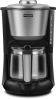 Тип управления механическое Тип кофеварки капельная Тип используемого кофе молотый Мощность 1000 Вт Противокапельная система ДА Регулировка крепости напитка ДА Объем резервуара для готового кофе 1.25 л Панель для подогрева чашек ДА Индикатор уровня воды ДА Материал корпуса нержавеющая сталь/пластик