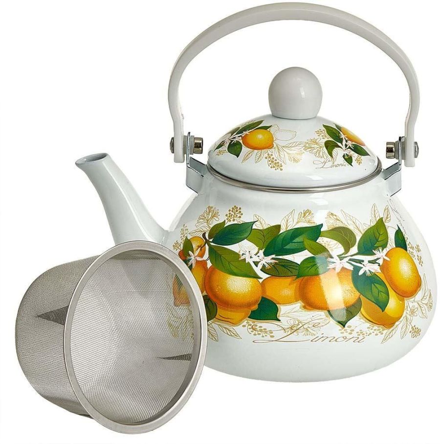 Параметры Объем 1,3 л Описание Чайник эмалированный с фильтром из нержавеющей стали Материалы: эмалированная сталь, нержавеющая сталь, пластик Серия: Лимоны Трехслойное внутреннее и внешнее эмалевое покрытие, устойчивое к воздействию пищевых кислот Эргономичная подвижная пластиковая ручка Зачерненное дно с повышенной термоотдачей Съемный фильтр из нержавеющей стали Классический дизайн Экологически чистые материалы Может быть использован на всех типах кухонных плит: электрических, газовых, керамических, индукционных Можно мыть в посудомоечной машине Упаковка: цветная коробка