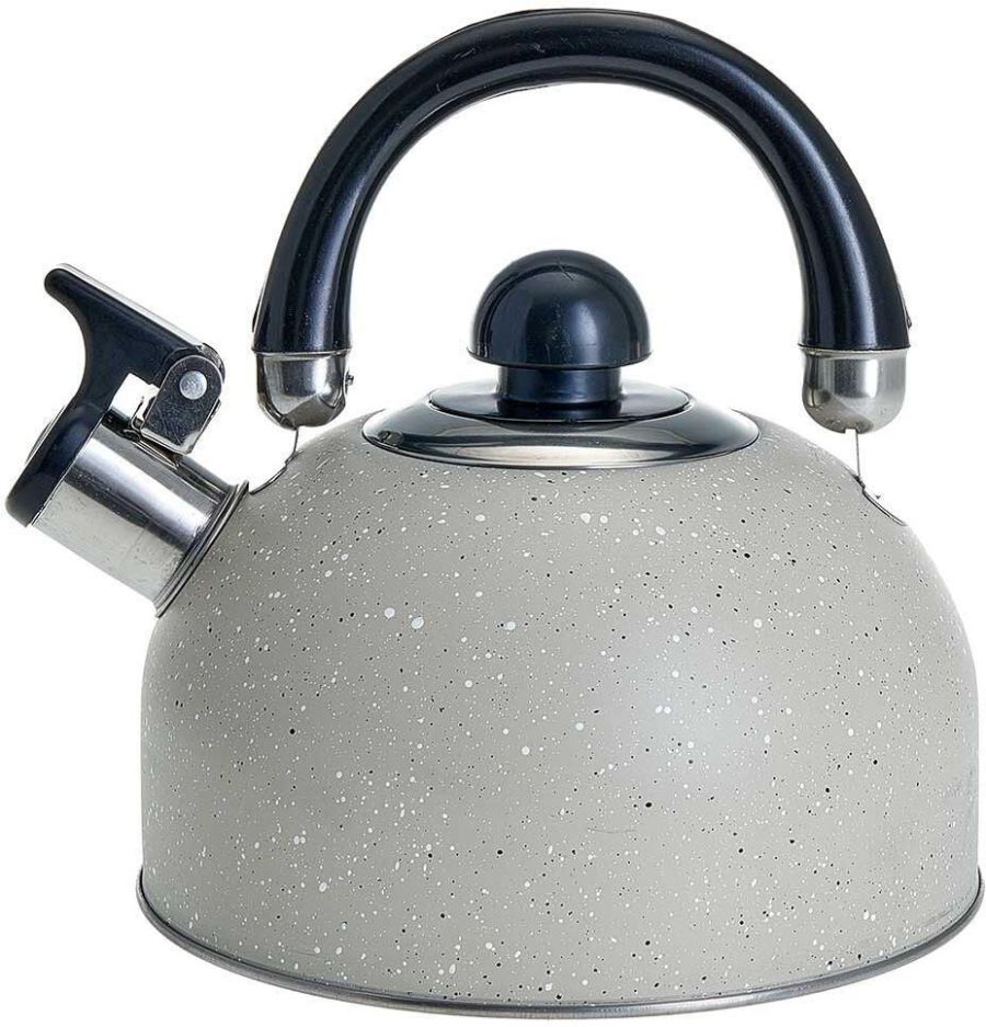Параметры Объем 3 л Толщина стали 0,6 мм Описание Чайник из нержавеющей стали со свистком Высококачественная нержавеющая сталь c цветным декоративным покрытием, матовая полировка Цвет: черный с золотом Термосберегающее индукционное дно Нейлоновая ручка с кнопкой открывания носика Цвет ручки и крышки: черный Пригоден для использования на всех типах кухонных плит, включая индукционные Упаковка: цветная коробка