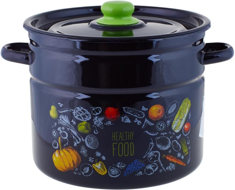 Объем, л./размер, см: 9.0 л Материал: эмалированная сталь Коллекция/серия: Healthy food Торговая марка: Appetite Толщина дна: 0.7 Толщина стенок: 0.7 Источник тепла: Все виды плит Крышка: эмалированная Внутреннее покрытие: эмаль Внешнее покрытие: эмаль