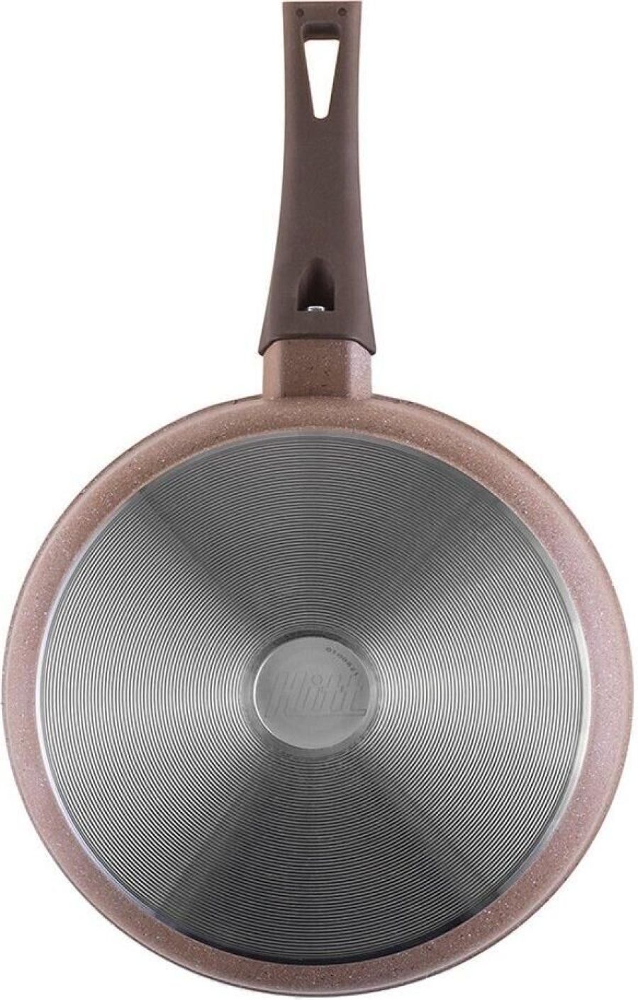 Материала: литой алюминий Толщина дна 5 мм Толщина стенок 3,5 мм. 2-х слойное антипригарное покрытие Greblon C2+ Ручка эргономичной формы с мягким силиконовым покрытием soft-touch не нагревается и обеспечивает хорошую фиксацию. Можно мыть в посудомоечной машине Подходит для всех типов плит, кроме индукционных