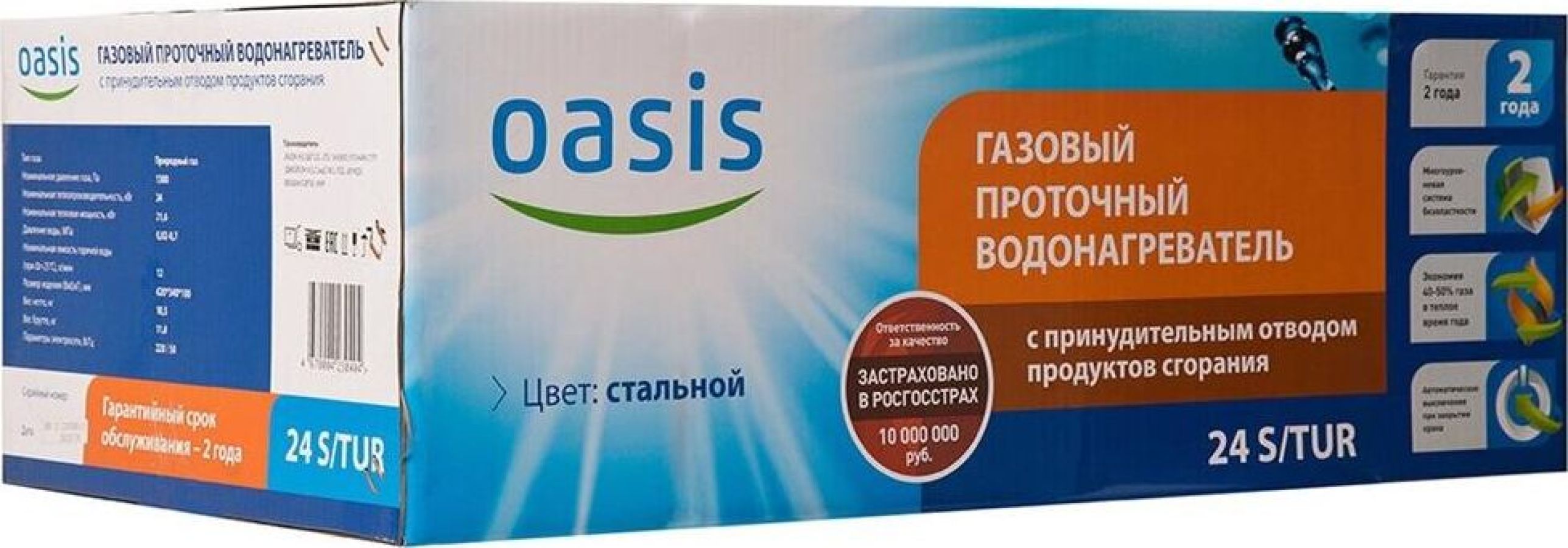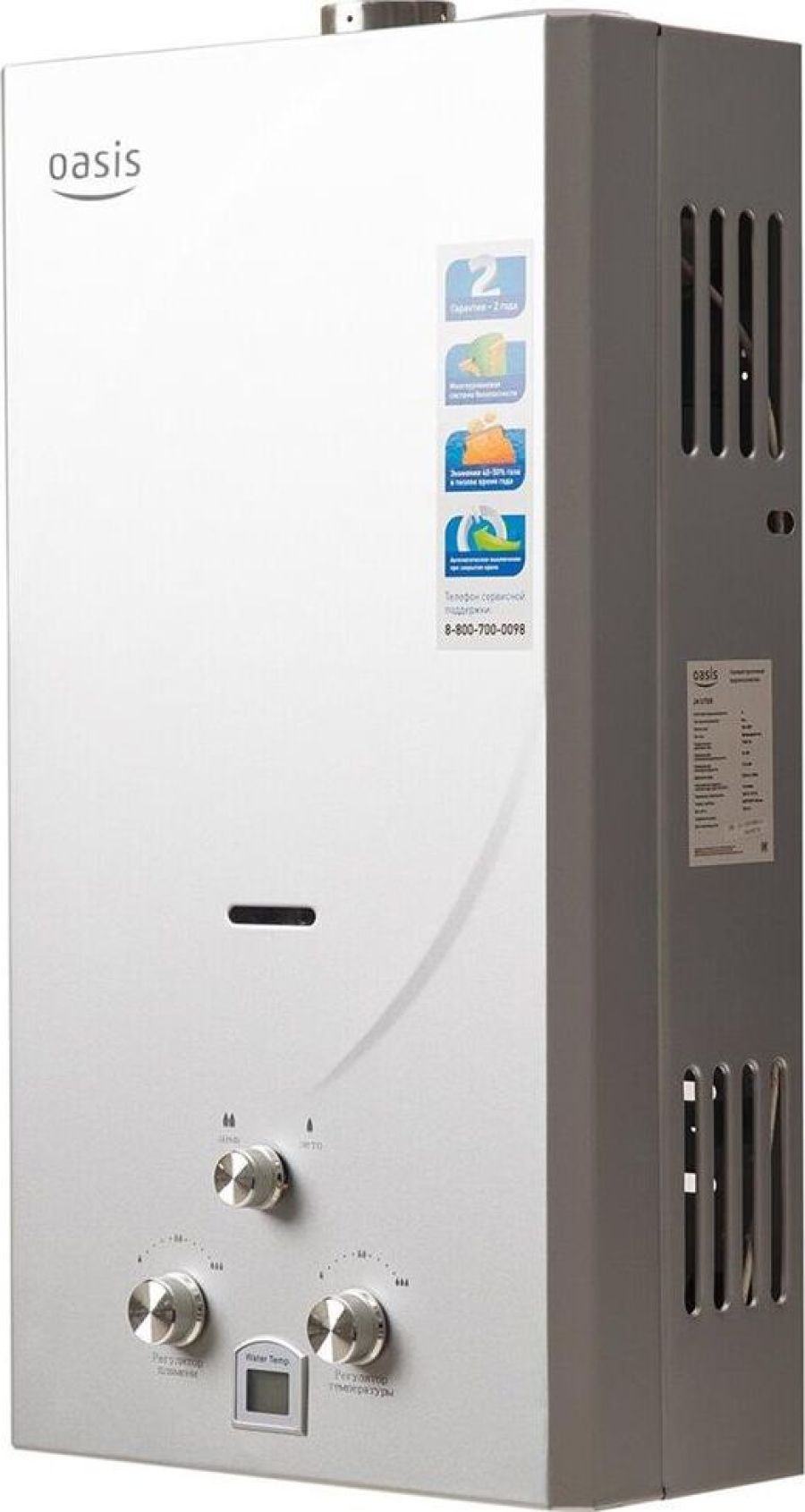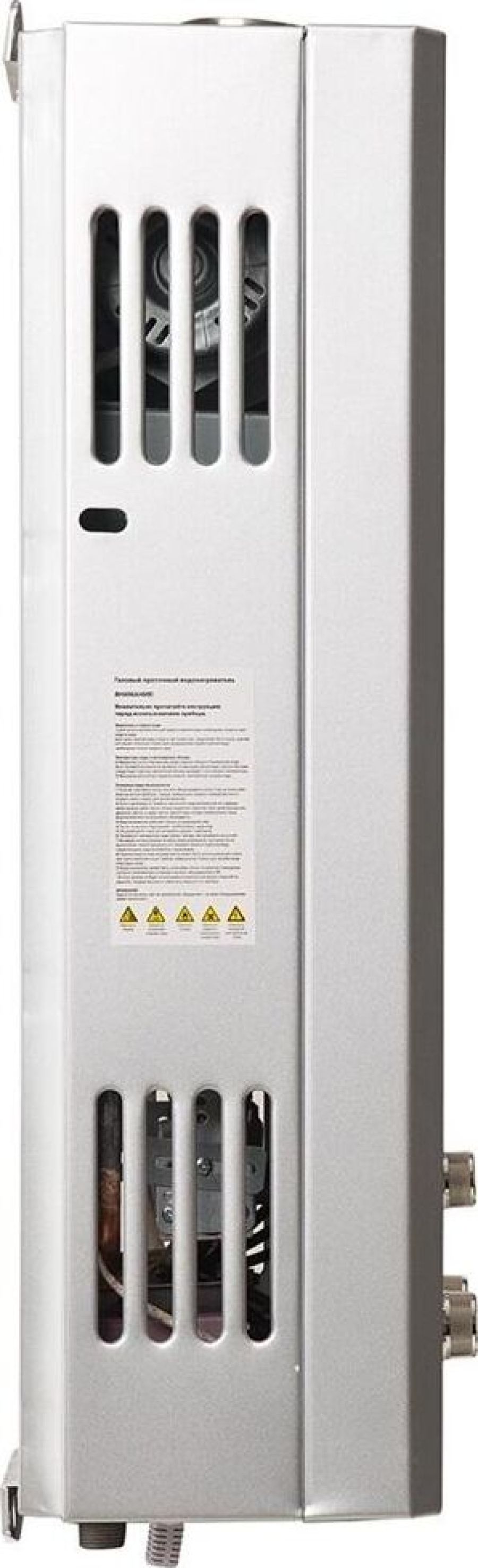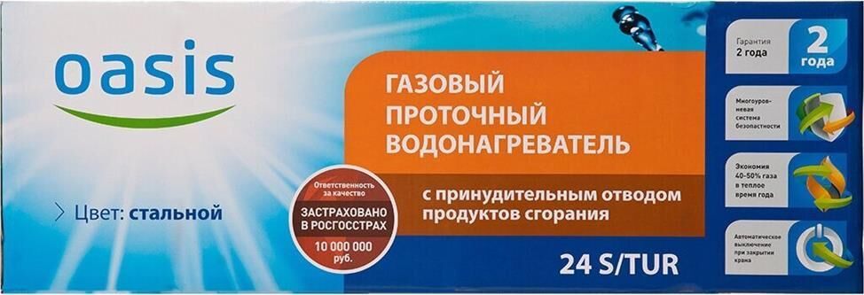 Тип топлива природный: газ; Мах тем-ра нагрева воды: 75 °С; Номинальная мощность: 24 кВт; Производительность: 12 л/мин; Автоподжиг: есть; Диаметр дымохода: 60 мм; Питание: 220В; Турбированная: да; Количество точек забора: 1; Вид: проточный; Тип камеры сгорания: открытая; Газ-контроль: да; Предохранительный клапан: да; Индикация включения: да; Индикация нагрева: да; Дисплей: да; Тип розжига: электронный; Min давление воды: 0.2 бар; Вес: 12,2 кг; Габариты: 620 х 340 х 180 мм Цвет. серый