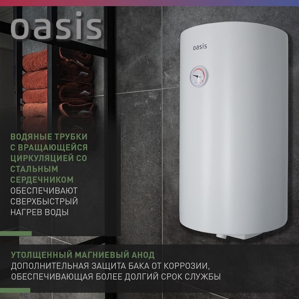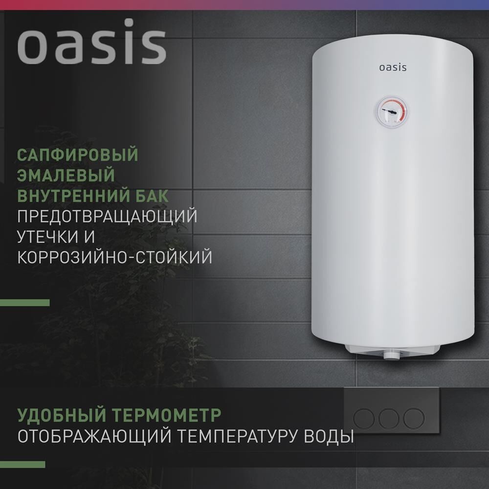 Электрический накопительный водонагреватель, круглая форма, эмалированное покрытие бака. Объем, л 80 Номинальная мощность, Вт 1600 Параметры электросети, В/Гц 220/50 Номинальное давление воды, МПа 0,8 Номинальная температура воды, °С 75 Степень защиты IPX4 Теплопроизводительность 90% Толщина теплоизоляционного слоя, мм 20 Толщина стенок бака, мм 1,8 Длина шнура, м 1,5 Тип установки Вертикальный Размер изделия, см 45 77,9