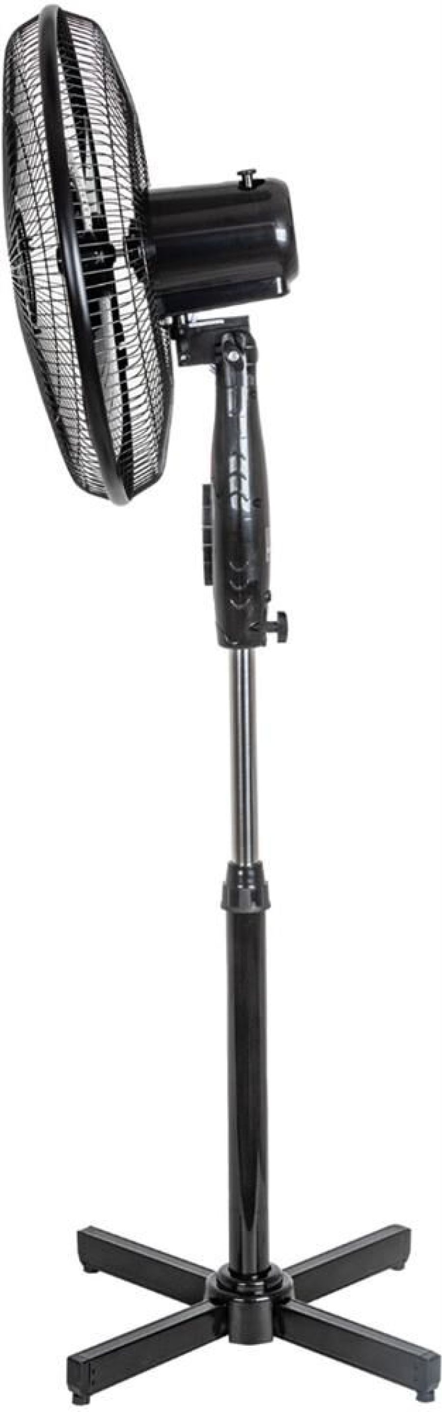 Вентилятор напольный Диаметр 16 “ 3 лопасти 3 скорости Вращение на 90° Регулировка угла наклона Режим осцилляции Устойчивое основание для размещения на полу Мощность 50 Вт Скорость вращения 1300 об/мин Материал: полипропилен Размер 45x45x125см