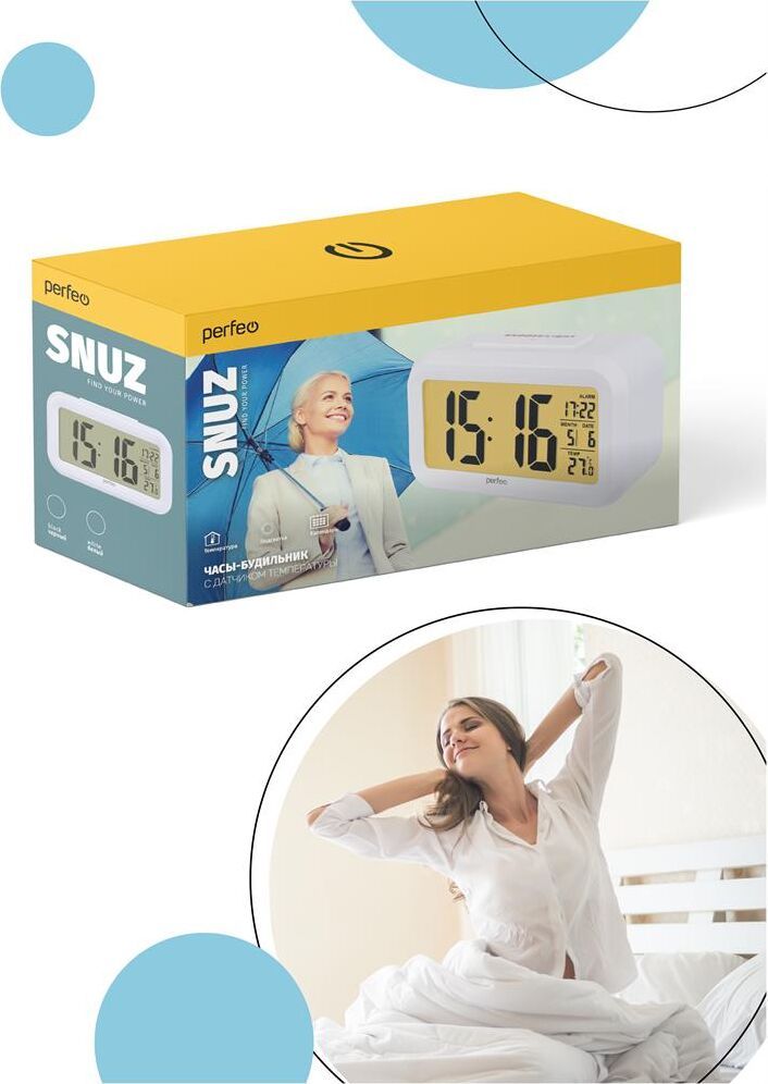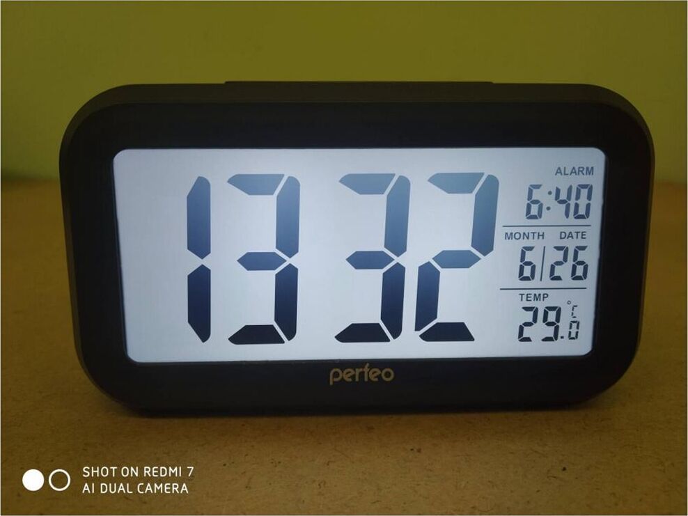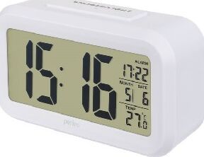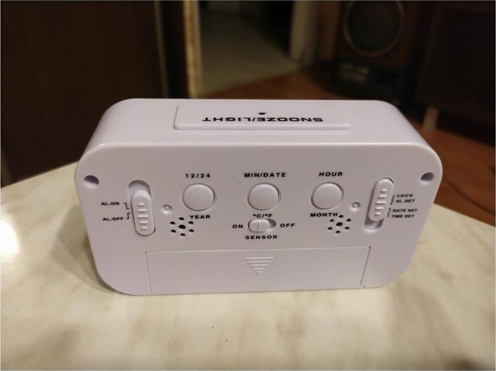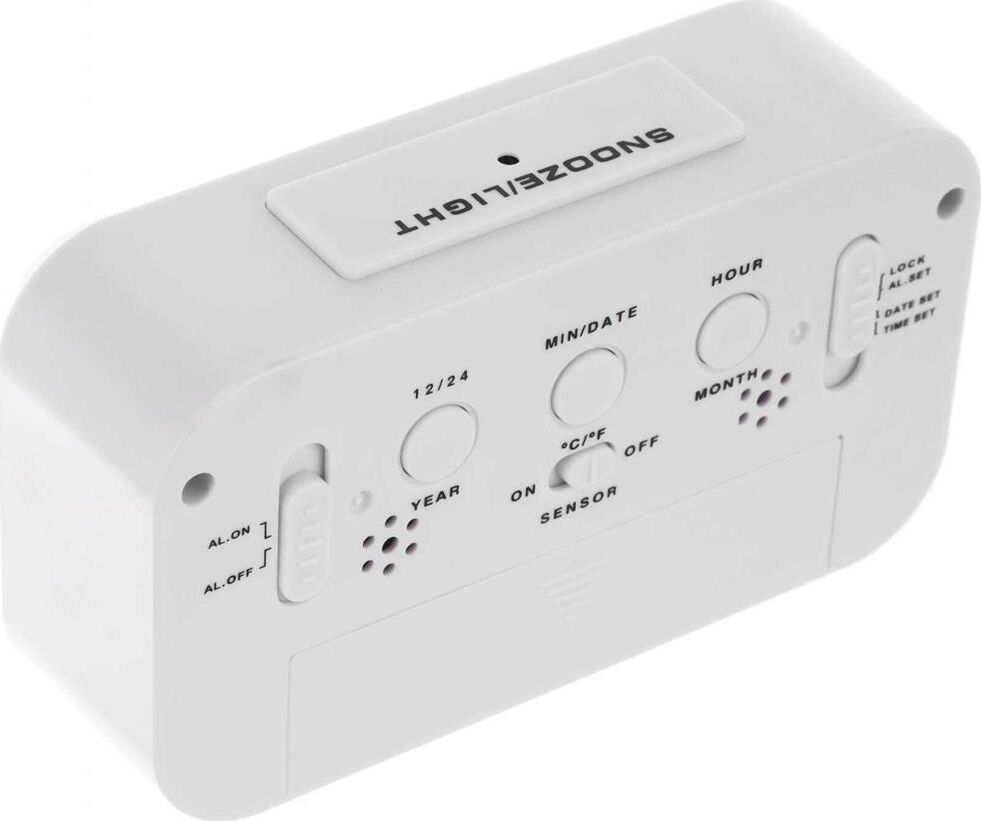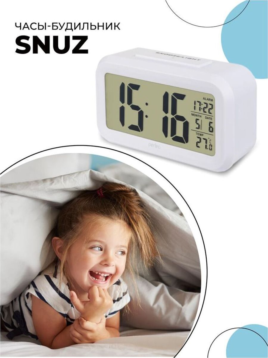 Часы-будильник, цифровой дисплей с одновременным отображением времени, даты и температуры, отображение времени: час, минута, 12/24 часа переключаемый, тображение температуры: °С/°F, будильник, подсветка дисплея, датчик света, питание: от батареек 3 х AAA (в комплекте)