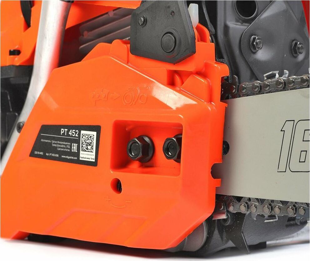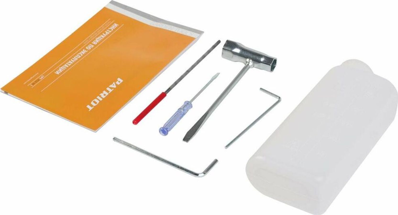 Комплект поставки: емкость для приготовления топливной смеси - 1 шт., шина - 1 шт., кожух шины - 1 шт., набор ключей - 1 шт., цепь - 1 шт., упор с комплектом крепежа - 1 шт., бензопила - 1 шт., инструкция по эксплуатации - 1 шт. , Емкость топливного бака: 0.55 л , Емкость масляного бака: 0.26 л , Функции и возможности: регулировка натяжения цепи без инструмента, тормоз цепи, плавный пуск, торможение двигателя