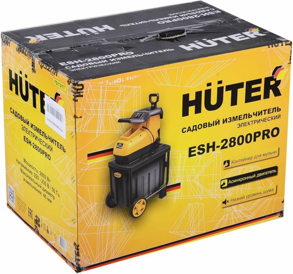 HUTER ESH-2800PRO Назначение измельчение веток и листьев Система измельчения фрезерная Количество ножей/лезвий 2 Скорость вращения 4600 об/мин Диаметр веток 45 мм Материал корпуса пластик Конструктивные особенности толкатель, загрузочная воронка, контейнер Двигатель Тип двигателя электрический Мощность 2.80 кВт Напряжение 220–230 В
