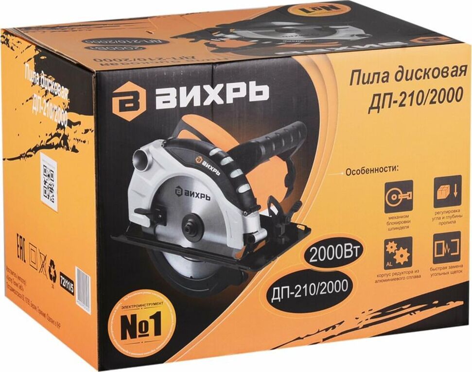 Комплект поставки: пильный диск, упаковка, паспорт, ключ шестигранный, параллельная направляющая, дисковая пила , Модификация (код производителя): 72/11/5 , Функции и возможности: подключение пылесоса, блокировка шпинделя