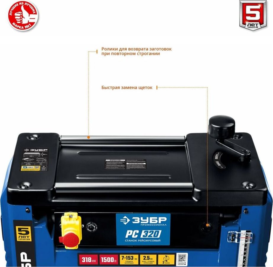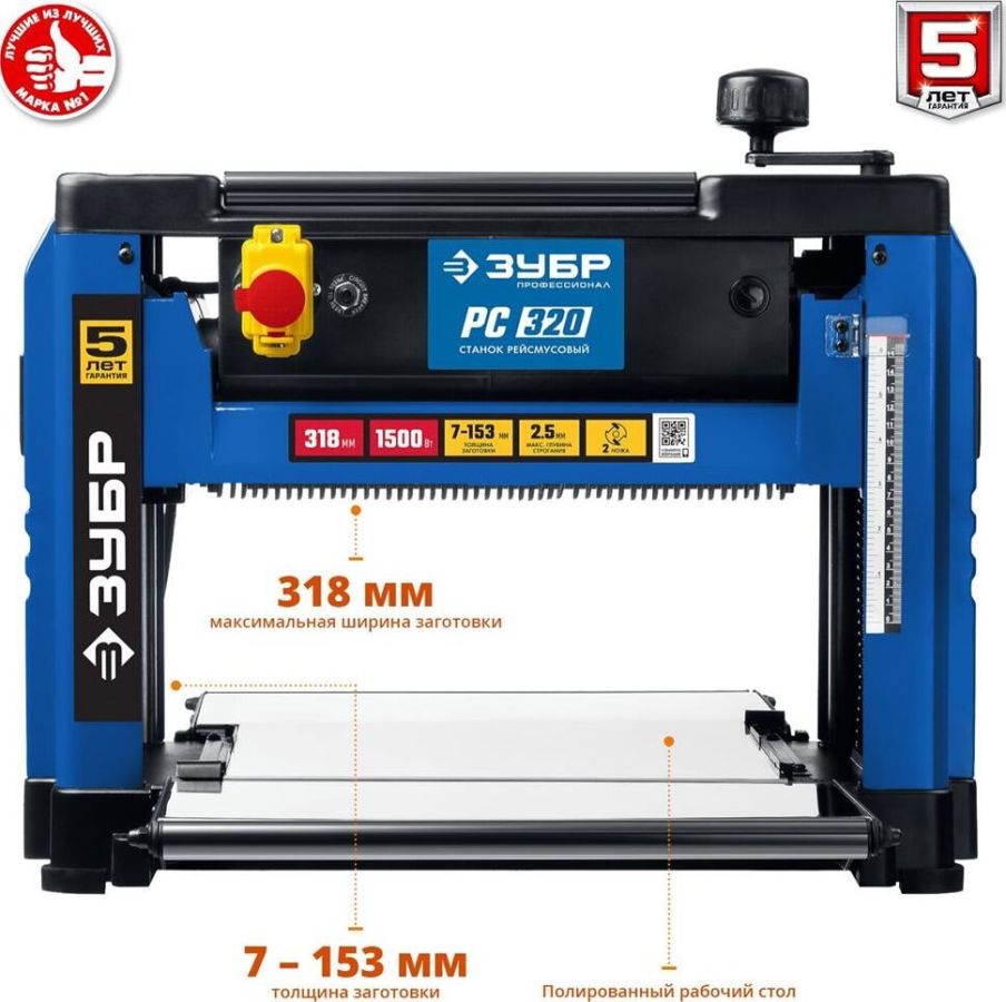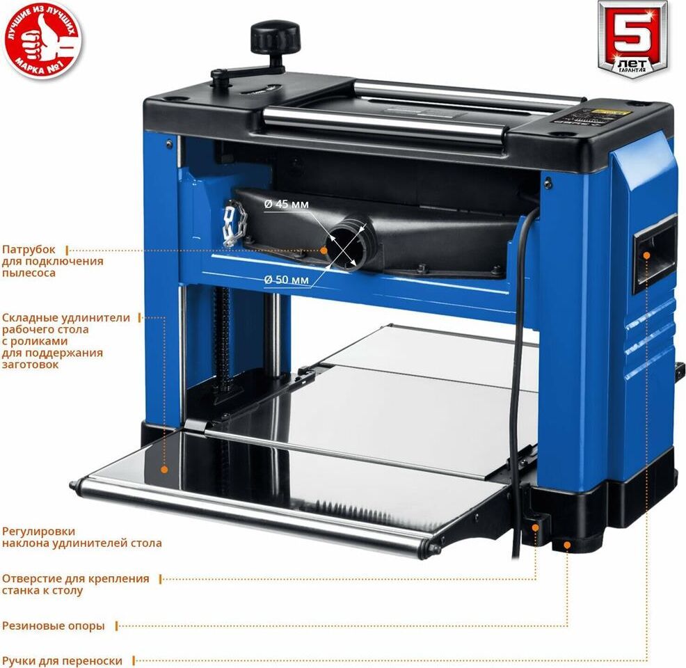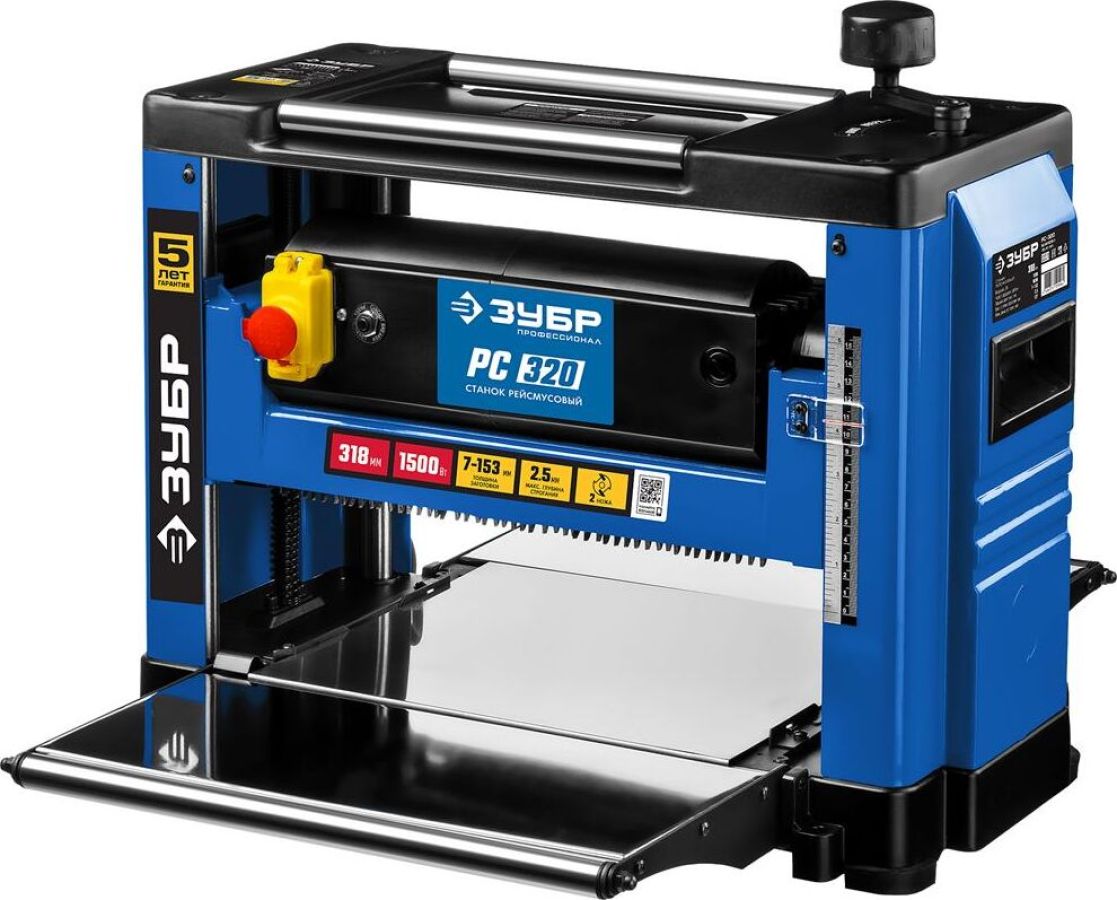Глубина строгания, мм2.5. Диаметр подключения к пылесборнику, мм40 и 50. Кол-во ножей 2. Макс. толщина заготовки, мм153. Масса в упаковке, кг33.5. Масса изделия, кг32. Мин. Толщина заготовки, мм5. Мин. длина заготовки, мм130. Мощность, Вт1500. Напряжение питания, В/Гц220±10% /50. Размер ножа, мм318х18.2х3.2. Размеры рабочего стола, мм320х285. Размеры удлинителя стола, мм365х200. Скорость автоматической подачи, м/мин8. Тип станка Рейсмусовый. Частота вращения строгального вала, об/мин9000. Ширина строгания, мм318.