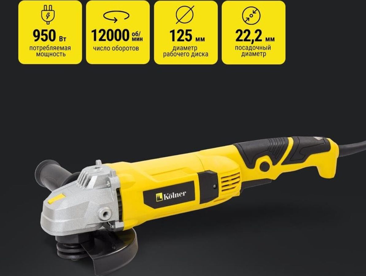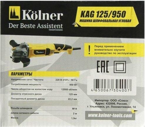 Комплектация: защитный кожух, угольные щетки (запасной комплект), ключ фланца, дополнительная рукоятка , Модификация (код производителя): кн125-950