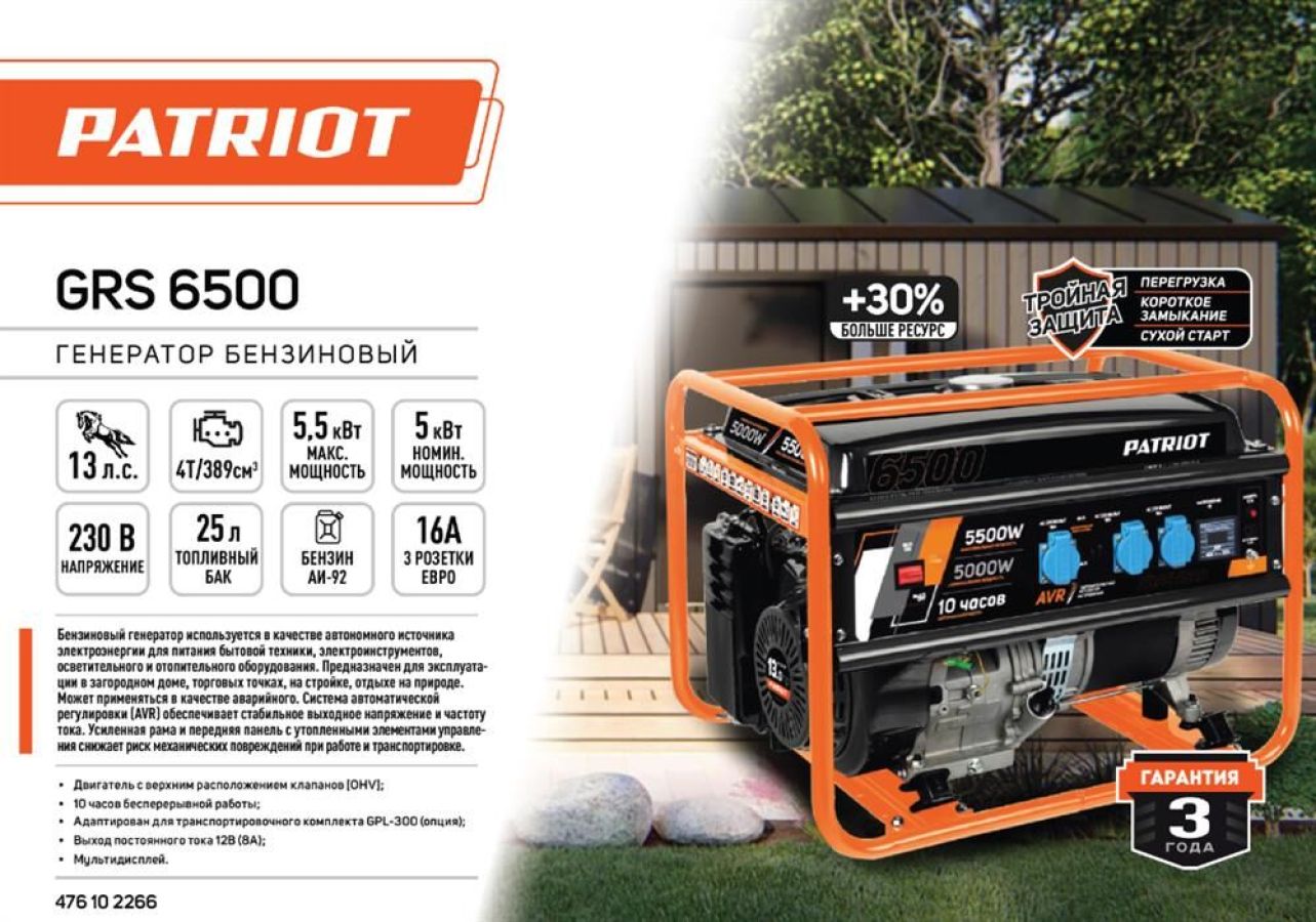 Макс. мощность, кВт 5,5 Номин. мощность, кВт 5 Напряжение, В 220 Мощность, л.с. 13 Объем двигателя, см.куб. 389 Объем топливного бака, л 25 Объем масляного картера, л 1.1 Тип двигателя 4-х тактный бензиновый Тип топлива бензин АИ-92 Система старта ручной Выход на 12B Да Розетки 3 евро 16А Вес товара, кг 70 Гарантия 3 года