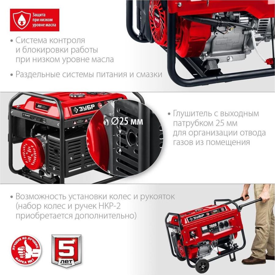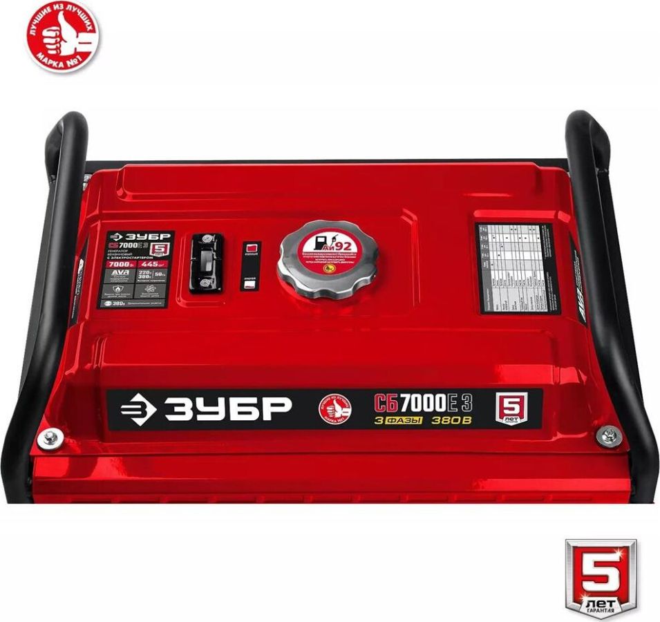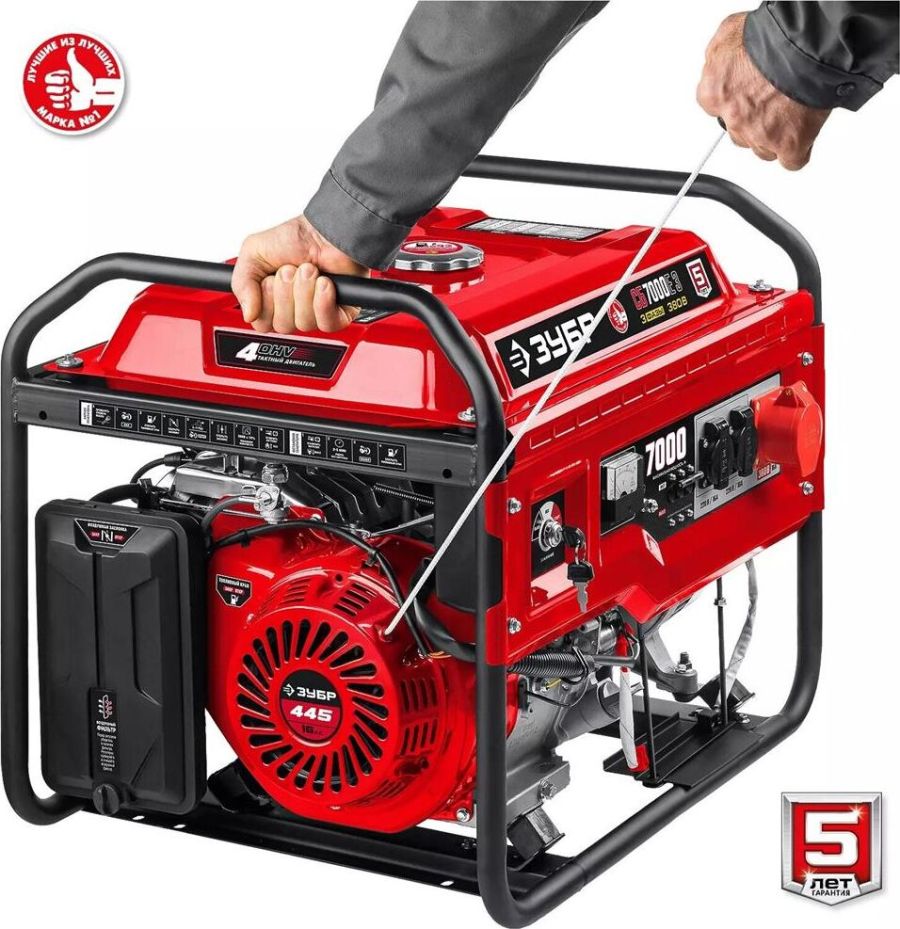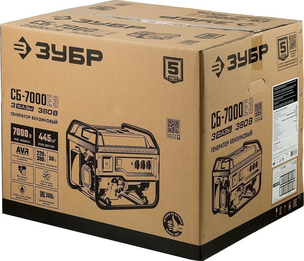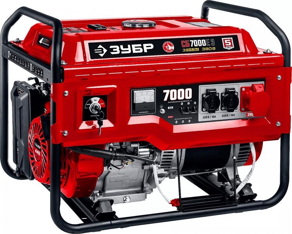 Тип генератора бензиновый, трехфазный, синхронный, щеточный Номинальная мощность, Вт 6500 Макс. мощность, Вт 7000 Номинальное вырабатываемое напряжение, В 380 / 220 Мощность двигателя, л.с. 16 Объем двигателя, см³ 445 Частота вращения, об/мин 3000 Емкость топливного бака, л 25 Объем заправки масла, л 1.1 Эл. выходы 12В/220В/380В, шт -/2/1 Сила тока розеток 12/220/380 В, А -/16.16/16 Стартер ручной, электрический Тип двигателя бензиновый 4-тактный, с воздушным охлаждением Вид топлива бензин АИ-92 Контроль напряжения AVR Датчик уровня масла есть Индикатор уровня топлива есть Норма расхода топлива, л/маш.-час 2.5 Размеры посадочного места аккумулятора, мм 155*95*147 Минимальная емкость аккумулятора, А*ч 14 Рекомендуемый старотовый ток аккумулятора, А 100 Разъем для подключения аккумулятора Болт + гайка М5, прямая полярность Габариты, см 79.5х58.5х58 Масса изделия, кг 89