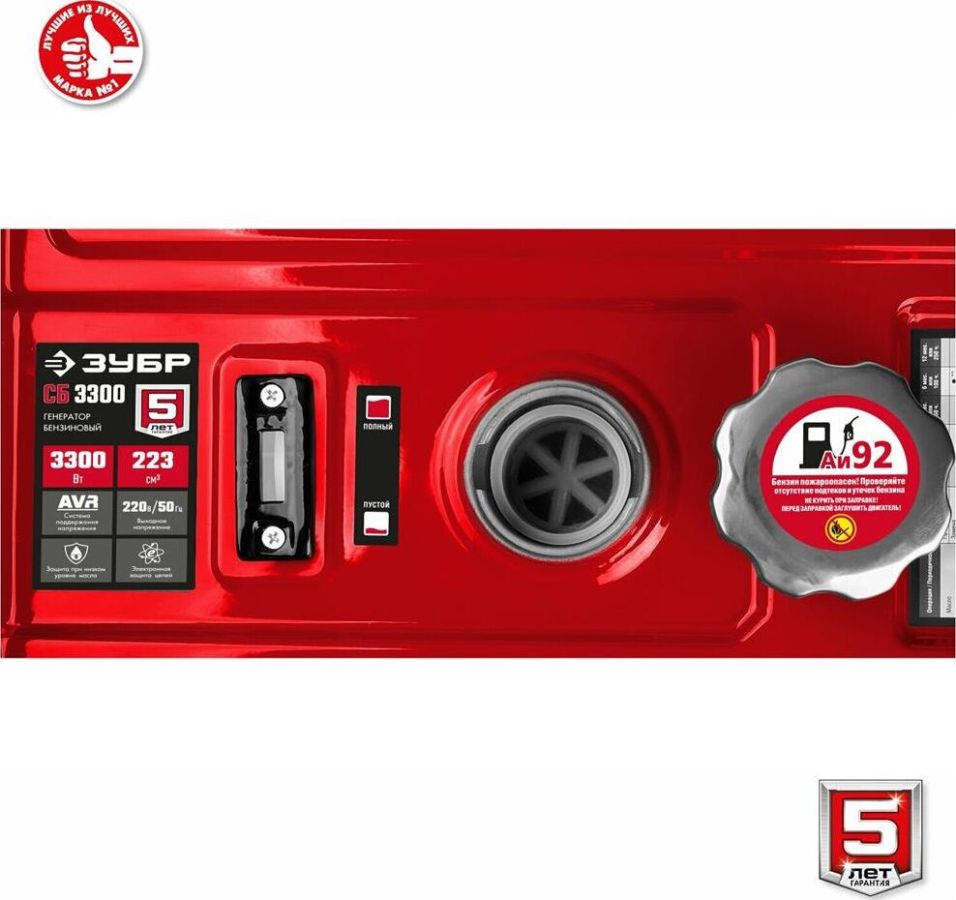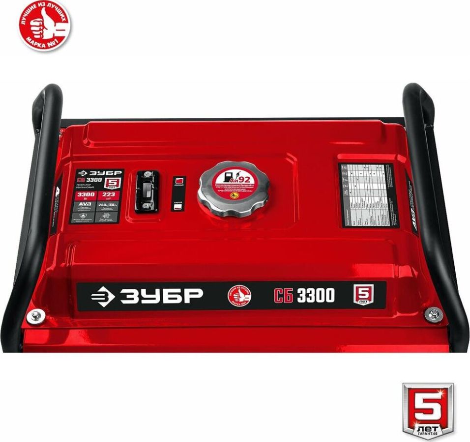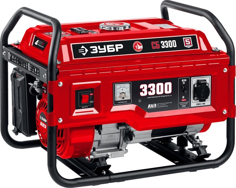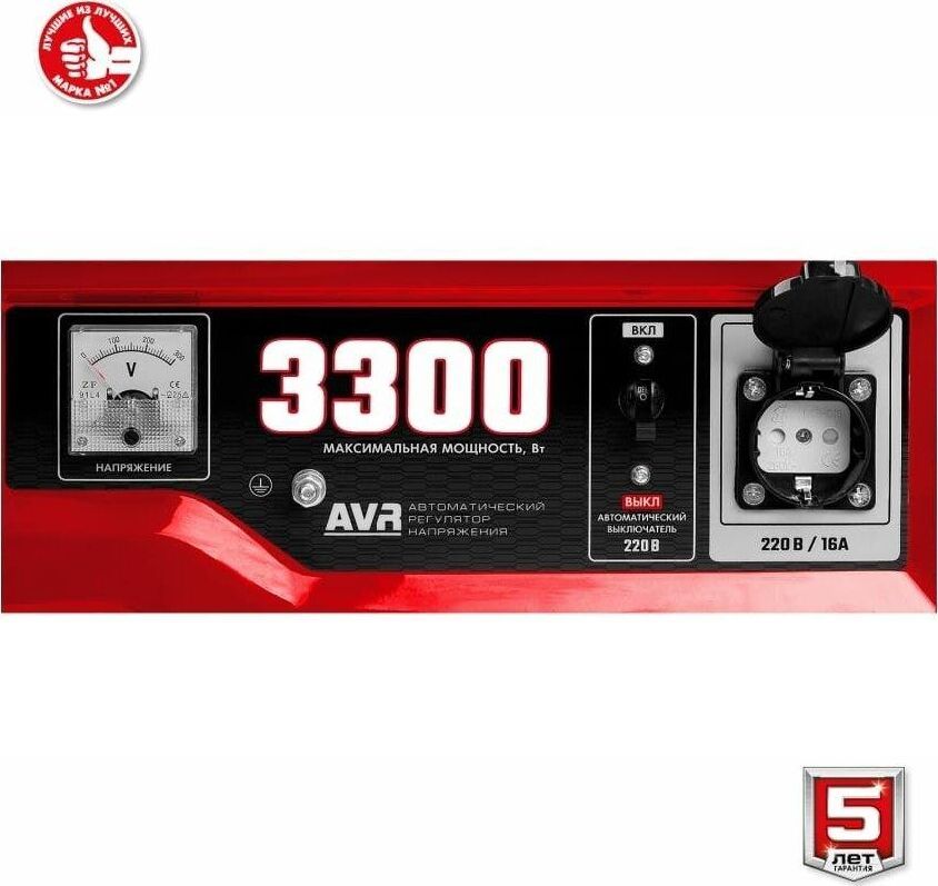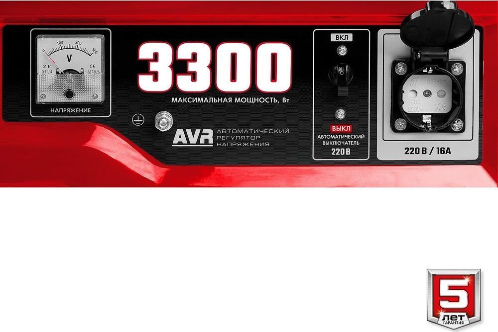 Тип генератора бензиновый, однофазный, синхронный, щеточный Номинальная мощность, Вт 3000 Макс. мощность, Вт 3300 Номинальное вырабатываемое напряжение, В 220 Мощность двигателя, л.с. 8 Объем двигателя, см³ 223 Частота вращения, об/мин 3000 Емкость топливного бака, л 15 Объем заправки масла, л 0.6 Эл. выходы 12В/220В/220В-32А, шт -/1/- Сила тока розеток 12/220/380 В, А -/16/- Стартер ручной Тип двигателя бензиновый 4-тактный, с воздушным охлаждением Вид топлива бензин АИ-92 Контроль напряжения AVR Датчик уровня масла есть Индикатор уровня топлива есть Норма расхода топлива, л/маш.-час 2.1 Габариты, см 61x48x47 Масса изделия, кг 44