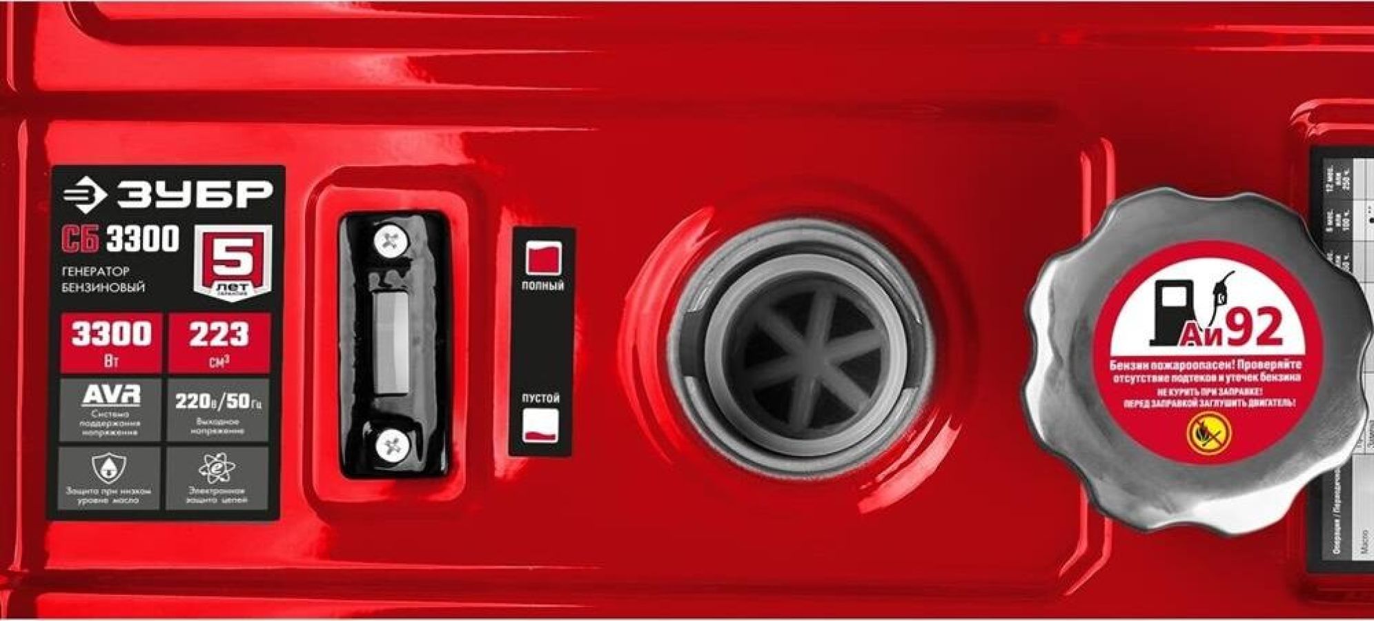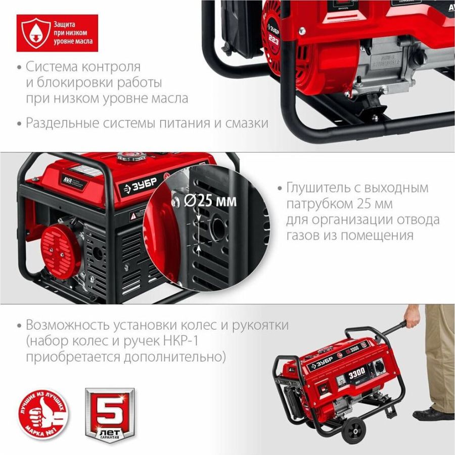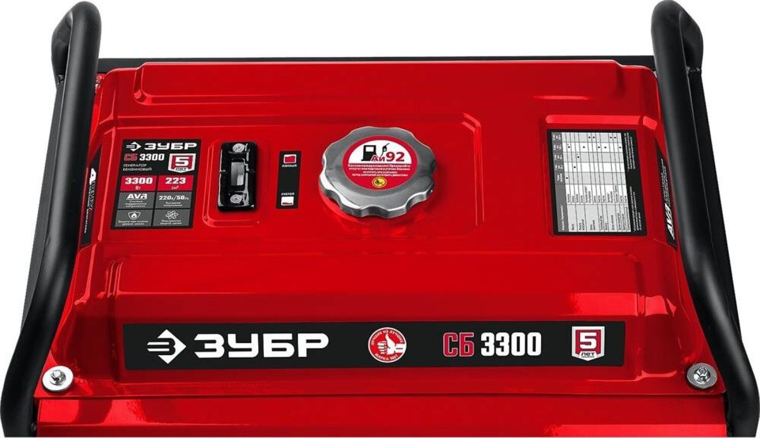 Тип генератора бензиновый, однофазный, синхронный, щеточный Номинальная мощность, Вт 3000 Макс. мощность, Вт 3300 Номинальное вырабатываемое напряжение, В 220 Мощность двигателя, л.с. 8 Объем двигателя, см³ 223 Частота вращения, об/мин 3000 Емкость топливного бака, л 15 Объем заправки масла, л 0.6 Эл. выходы 12В/220В/220В-32А, шт -/1/- Сила тока розеток 12/220/380 В, А -/16/- Стартер ручной Тип двигателя бензиновый 4-тактный, с воздушным охлаждением Вид топлива бензин АИ-92 Контроль напряжения AVR Датчик уровня масла есть Индикатор уровня топлива есть Норма расхода топлива, л/маш.-час 2.1 Габариты, см 61x48x47 Масса изделия, кг 44