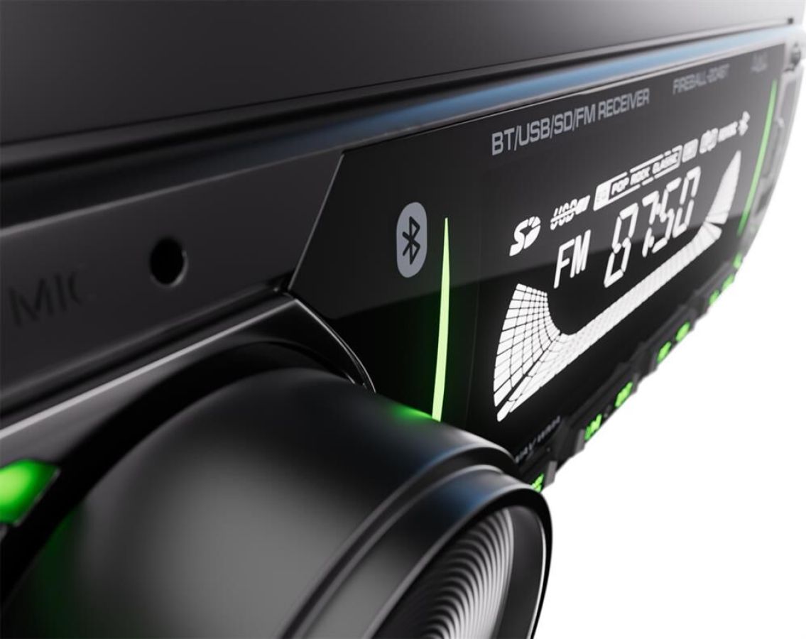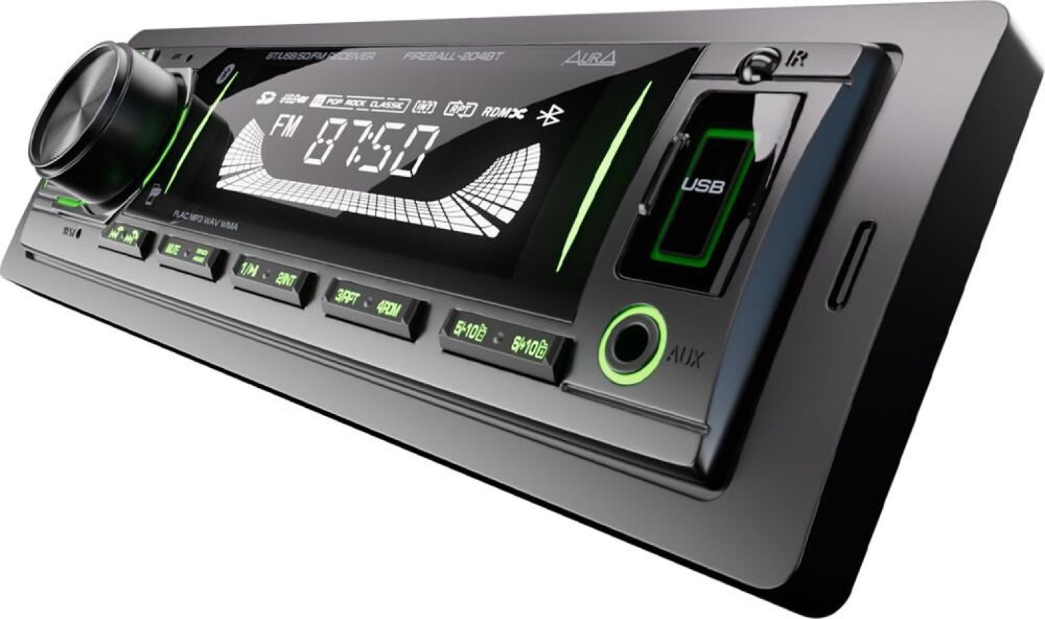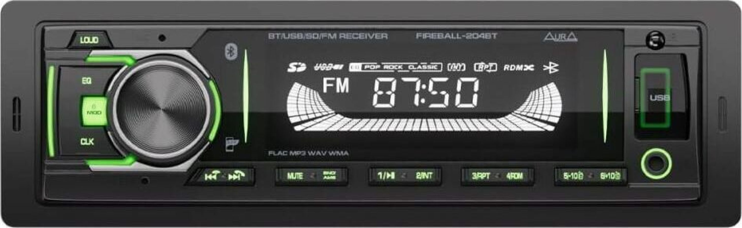 Автомобильный BT/USB ресивер Рабочее напряжение 12-24 Вольт Совместимое с iOS и Android приложение для управления всеми функциями ресивера Чтение звуковых форматов FLAC, MP3, WAV, APE, AAC Встроенный Bluetooth-модуль (A2DP) Максимальная выходная мощность: 36Вт Номинальная выходная мощность (при КНИ менее 1%): 10Вт Вход AUX (3,5 мм джек) Линейный выход RCA (1 пара) Предустановки эквалайзера (классическая/ популярная музыка, рок) Цифровой радио-тюнер Память на 18 FM радиостанций USB-порт ID3 тэги (английский язык) Несъемная панель Зеленая подсветка Жидкокристаллический (VA) дисплей ISO разъем (ISO коннектор в комплекте)