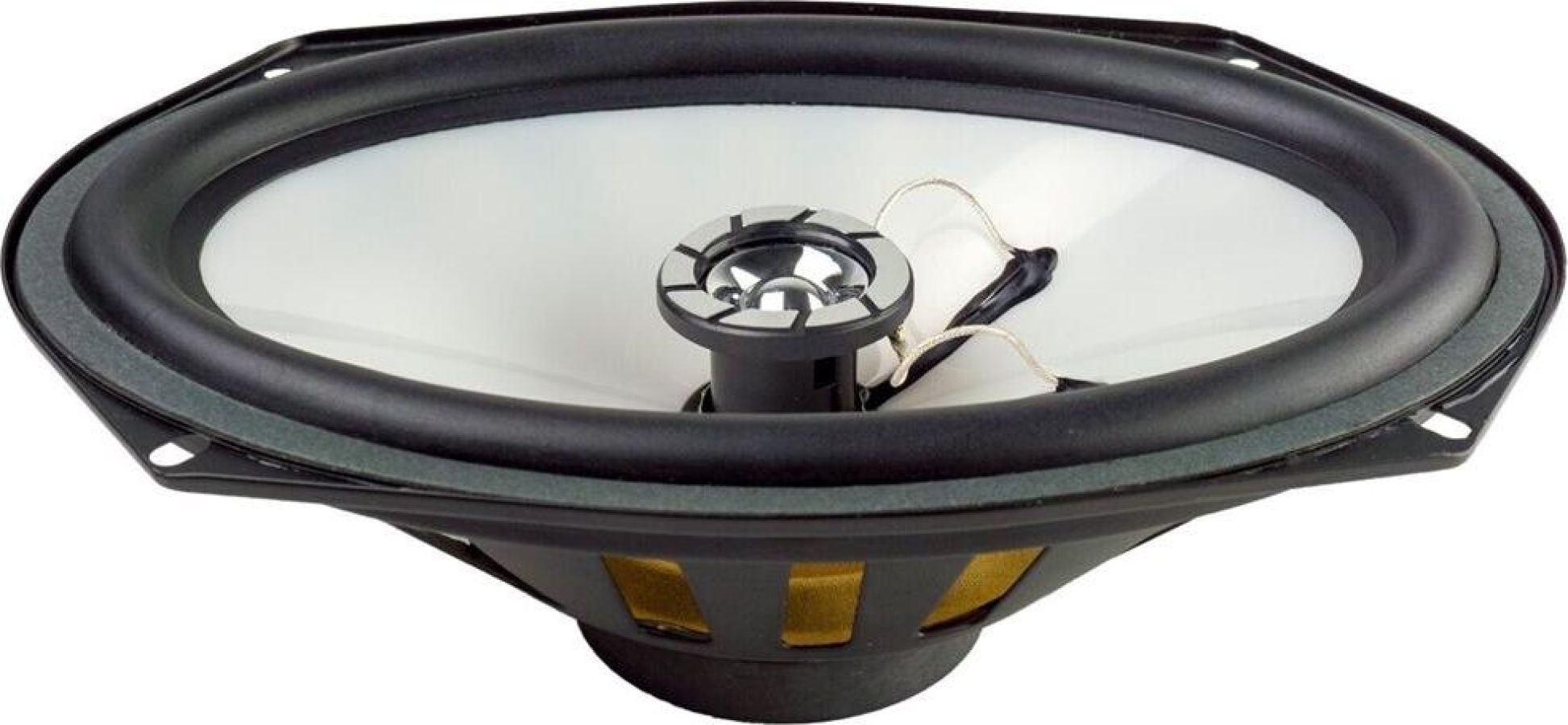 Тип акустической системы коаксиальная. Типоразмер 6x9 дюйм. Количество полос 2. Частотный диапазон 50 - 18000 Гц. Чувствительность 91 дБ. Сопротивление 4 Ом. Номинальная выходная мощность 75 Вт. Максимальная выходная мощность 240 Вт. Установочная глубина 7,2 см. Установочный размер 21,9 x 15,1 см. Материал корпуса сталь. Материал подвеса бутилкаучук. Материал диффузора полипропилен. Материал магнита феррит. Комплектация 2 динамика, набор для установки, решетка, гарантийный талон, инструкция на русском языке. Размеры, см. (В х Ш х Г) 8x16,6x23,5. Размеры в упаковке, см. (В х Ш х Г) 26,5x35,8x11,1. Вес в упаковке 1,65 кг.