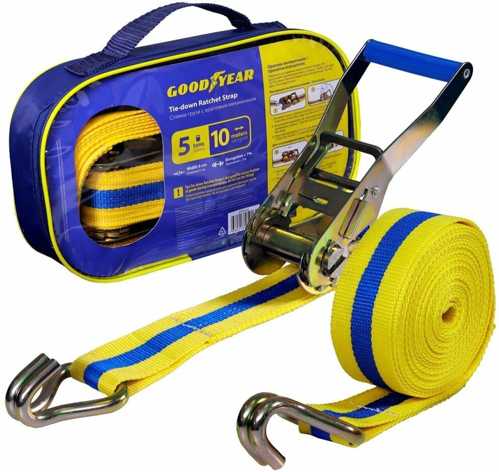Количество: 1 штука Вес нетто: 1,635 кг Вес брутто: 1,715 кг Размеры упаковки: 300х180х60 мм Ширина: 5 см Материалы: сталь, полипропилен Сумка в комплекте Удлинение ленты не превышает 7%. Это позволяет затянуть стяжку максимально плотно при этом не допустить ослабления фиксации с течением времени.