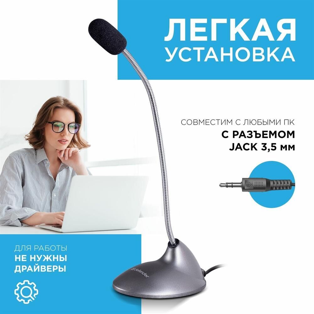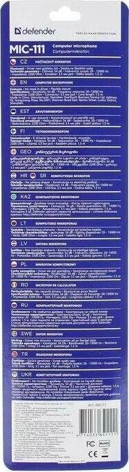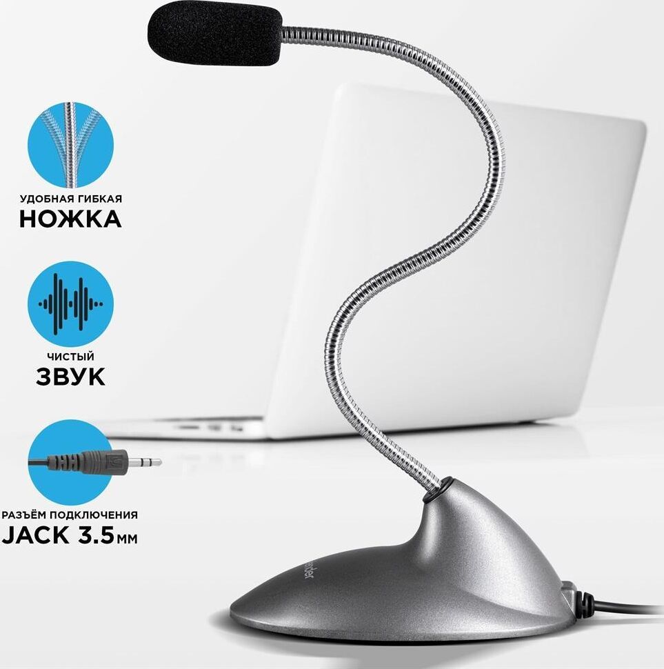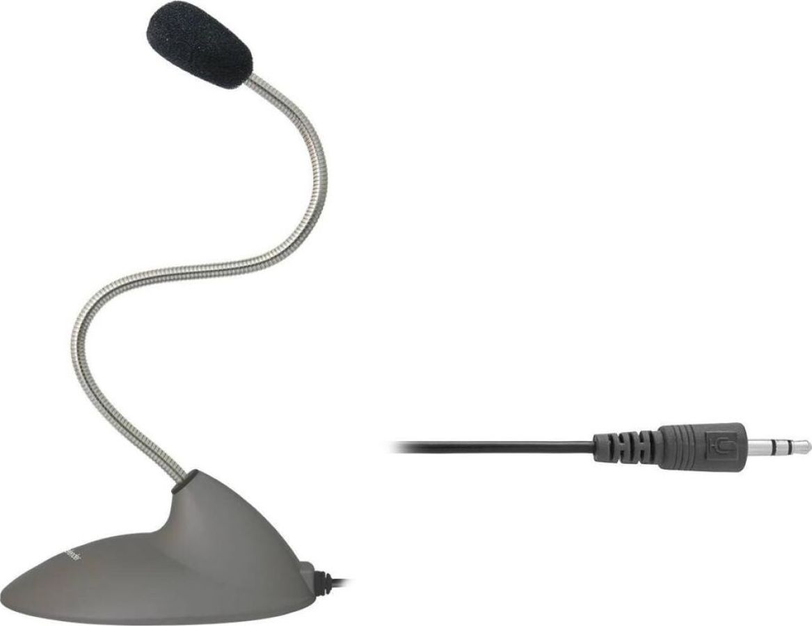 Микрофон компьютерный, Частотный диапазон 20–13000 Гц Чувствительность 54 дБ, Импеданс 2,2 кОм, Разъемы 3,5-мм джек, материал корпуска - пластик, длина кабеля - 1,5 м.