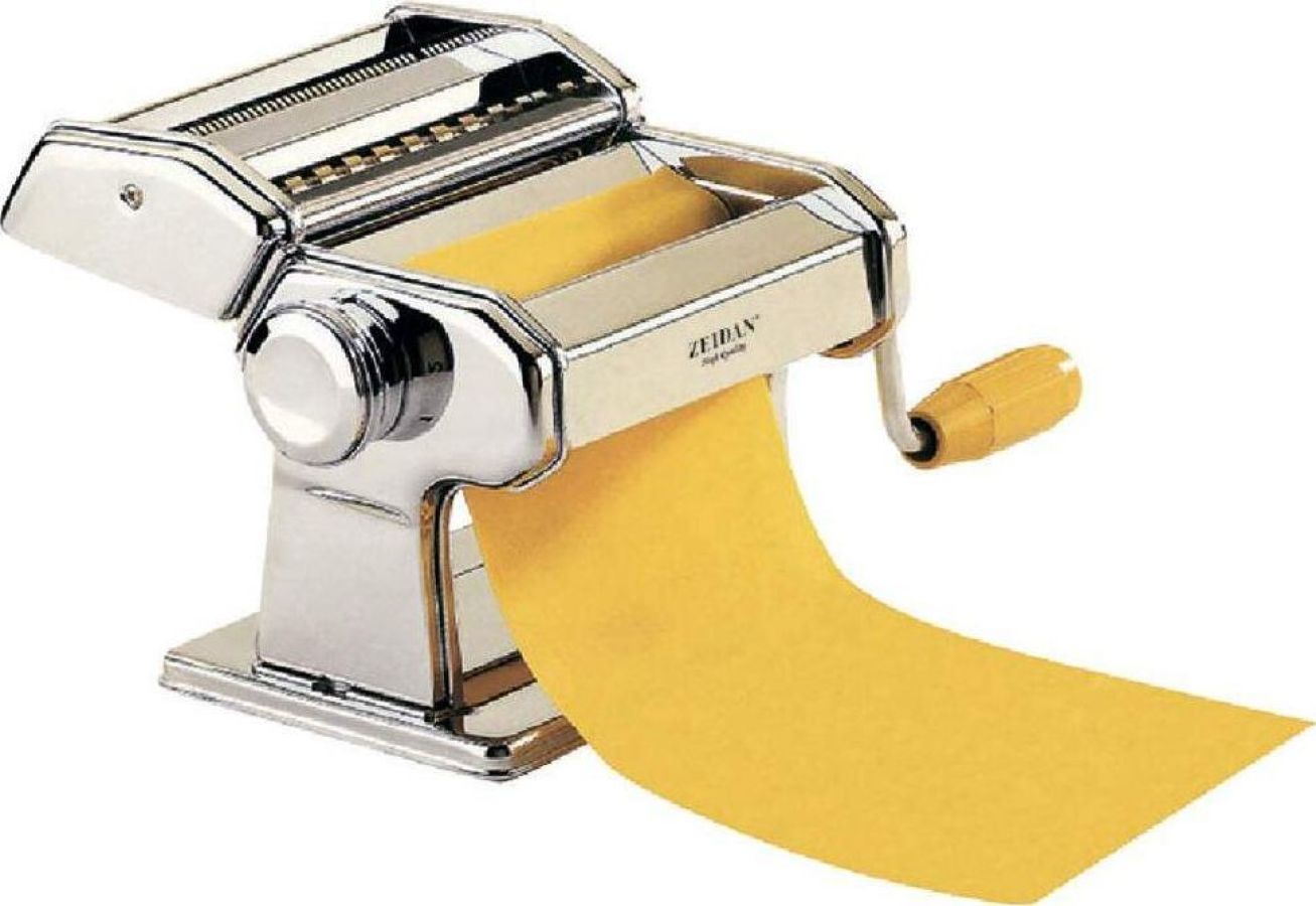 Лапшерезка ZEIDAN Z-1194 150 мм, Лапшерезка, нержавеющая сталь, нарезной блок для 2-х видов лапши ( 2,2 и 6,6 мм), валик для раскатки теста 150 мм, 9 режимов толщины раскатки теста ( 0,5-3 мм) , съемная ручка, струбцина для крепления к столу, механический привод. Подарочная упаковка.