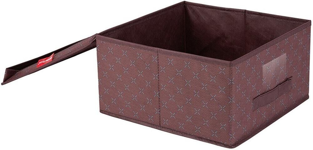 Складной короб для хранения с крышкой, ручкой и прозрачным кармашком для заметок, размер 30*30*16см. Легко складывается. Занимает мало места в сложенном виде. Состав (материал): нетканый материал (100% полиэстер), картон, полиэтиленвинилацетат