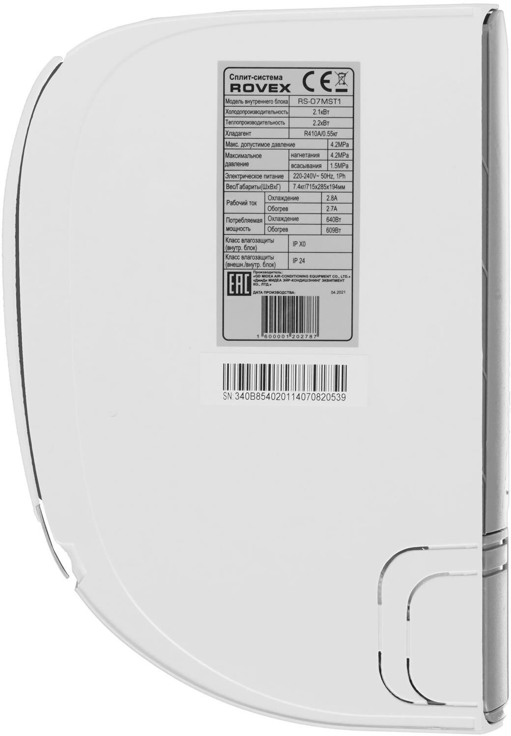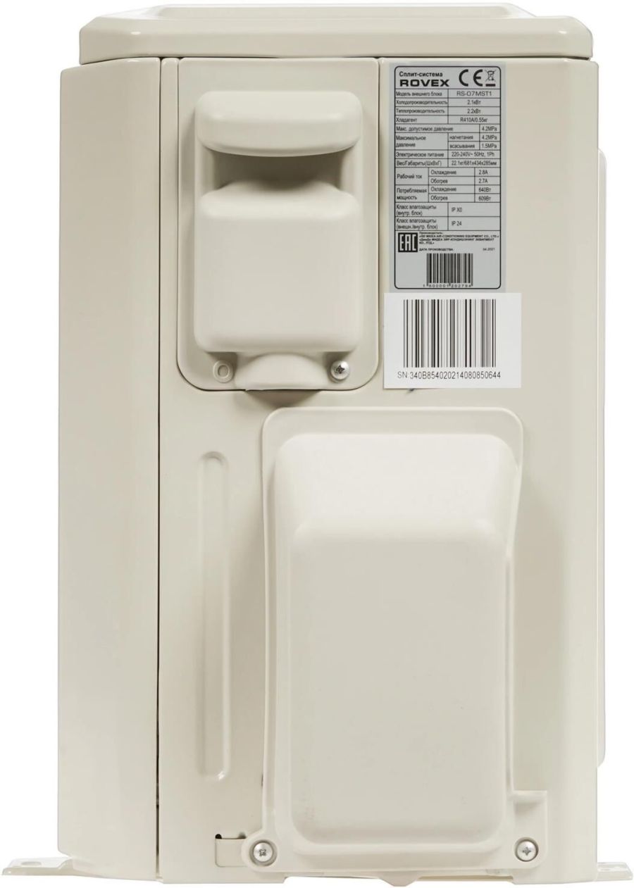 Тип - настенная сплит-система Тип монтажа - настенный Напряжение подключения - 220 В Тип (мощность БТЕ/BTU) - 7 Тип хладагента - R410 Мощность при охлаждении - 2.1 кВт Мощность при обогреве - 2.2 кВт Потр. мощность при обогреве - 0.6 кВт Потр. мощность при охлаждении - 0.64 кВт Рекомендуемая площадь - 21 м² Диаметр труб хладагента (жидкость) -1/4 дюйм Диаметр труб хладагента (газ) -3/8 дюйм Макс. поток воздуха - 8.08 м³/мин Режим работы - охлаждение/обогрев Допустимая температура наружного воздуха при обогреве(max/min) - +24/-7 °С Количество блоков - 2 шт Мин. уровень шума (вн./нар. блок) - 25/51.5 дБ Макс. уровень шума (вн./нар. блок) - 35/51.5 дБ Кол-во скоростных режимов - 3 Регулировка направления - есть Ночной режим - да Автоматический режим - да Устранение запахов при включении - да Таймер - да Фильтры тонкой очистки воздуха - да Регулировка скорости вентилятора - есть Авт. размораживание теплообм. - есть Режим вентиляции - да Режим осушения воздуха - есть
