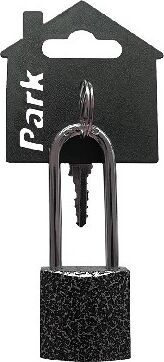 Замок навесной Park ВС3Р32 ключевой механизм - латунь 3 ключа в комплекте размер корпуса: 2,9 х 3,2 х 1,4 см размер дужки: d 0.91 х h 5,4 см размер замка: 8,3 х 3,2 х 1,4 см упаковка пластиковый подвес в виде домика и п/э пакет