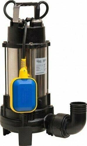 Насос фекальный с режущим механизмом, мощность 1800 Вт, максимальный напор 12 метров, максимальный расход 350 л/мин, максимальный размер пропускаемых частиц 50 мм, максимальная глубина погружения 8 метров, материал корпуса чугун, материал крыльчатки чугун
