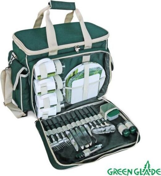 Набор для пикника GREEN GLADE T3134 является незаменимой вещью для отдыха на природе и в дальних поездках. • Изотермическая сумка-холодильник • Размер (ДхШхВ): 39х31х33 см •Вес нетто: 2,875 кг •Объем: 24 л •Материал: 600х300D полиэстер (2 тона) •Количество предметов в сумке: 30 штук (ножи, вилки, ложки, бокалы, тарелки, салфетки, солонка, перечница, штопор, нож, разделочная доска, емкость для масла) •Количество в коробке: 4 штуки •Размер индивидуальной коробки: 46х18х34 см •Размер транспортной коробки: 75х47х37 см •Вес брутто: 14,5 кг