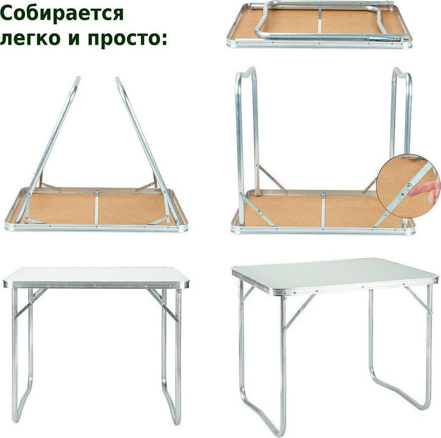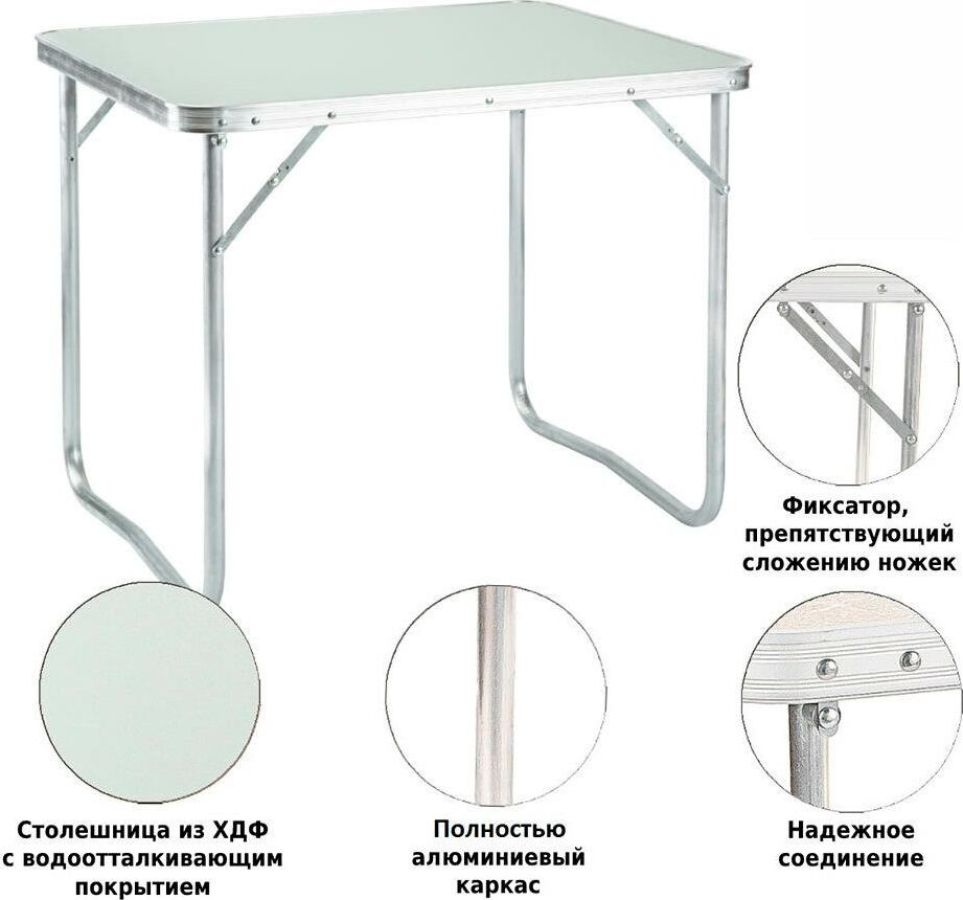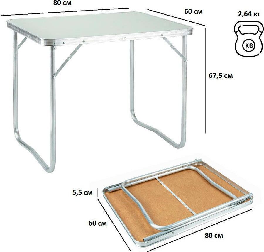 Удобный и компактный складной стол идеально подходит для отдыха на природе. Его удобно возить с собой, а также хранить в гараже или помещении, так как оне не занимает много места. •Размер: 80x60х73 см • Цвет: серый •Материал: столешница ХДФ