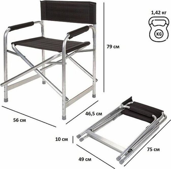 Удобный и компактный складной стул идеально подходит для отдыха на природе. Прочный и удобный складной стул незаменим для пикника. Стул очень быстро складывается и раскладывается. • Pазмер д/ш/в 56х46,5х79 см • Каркас алюминий o 24мм • Материал: ткань ПВХ • упаковка: 70*41*81 см
