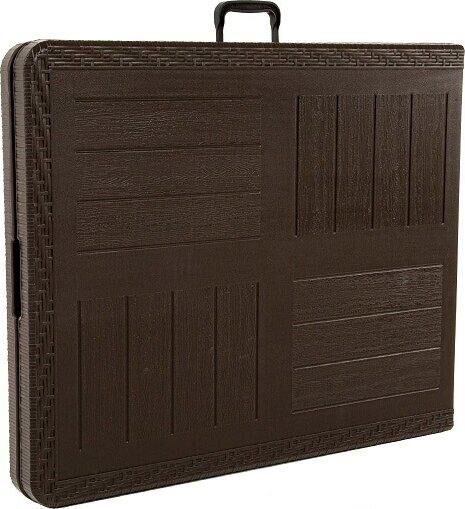 Размер стола: 179х74.5х72 см - Размер стола в сборе: 90х74,5х8,6 см - Каркас: стальная труба O 25х1 мм - Столешница: качественный, приятный на ощупь пластик HDPE, имитация под дерево - Цвет: Коричневый Упаковка: 1 шт/1 коробка Вес нетто 13 кг Вес брутто: 14 кг Размер упаковки: 92X76X9.5 см Торговая марка Green Glade