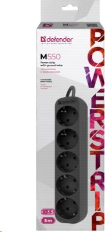 Номинальное напряжение/частота: 230 В / 50 Гц, Максимальная суммарная мощность нагрузки: 2200 Вт, Максимальный ток нагрузки: 10 А, Розетки с заземлением: 5 шт., Длина: 5 м.