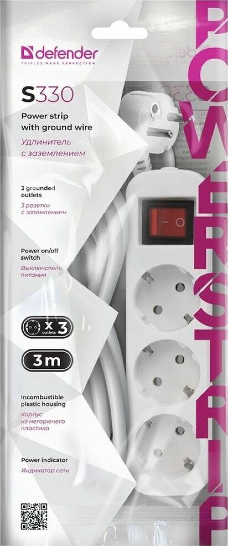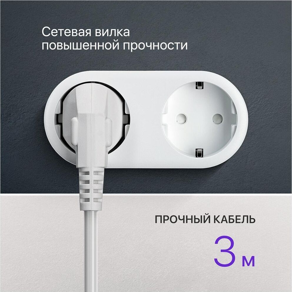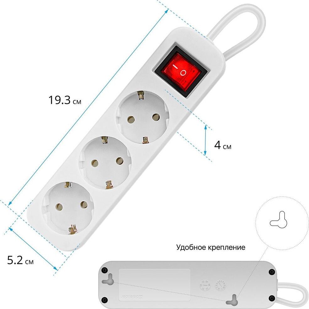 Удлинитель с заземлением, Максимальная суммарная мощность нагрузки 2200 Вт, Максимальный ток нагрузки 10 А.