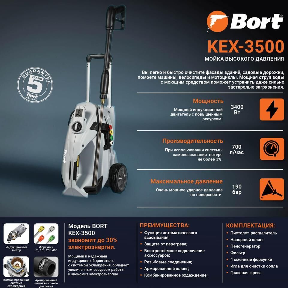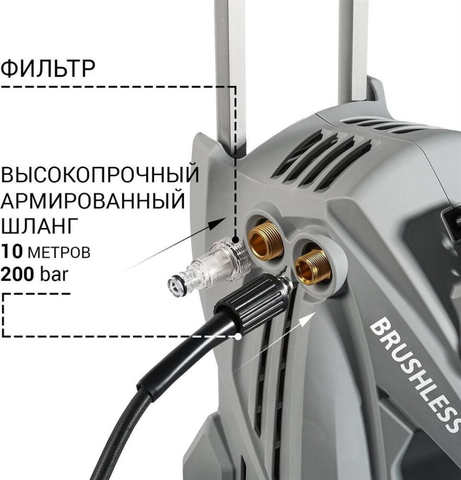 Мощность, Вт: 3400 Вт , Защита: отключение при недостатке воды, автоматическое отключение, защита двигателя от перегрева, защита шланга от скручивания, предохранительный клапан , Длина шланга высокого давления: 10 м , Габариты (ШхГхВ): 37x46 см