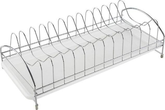 Сушилка для посуды может использоваться, как на рабочей поверхности, так и в шкафу Снабжена пластиковым поддоном Позволяет разместить до 14 тарелок Размер сушилки: 43*18*11 см Материал: хромированный металл, пластмасса