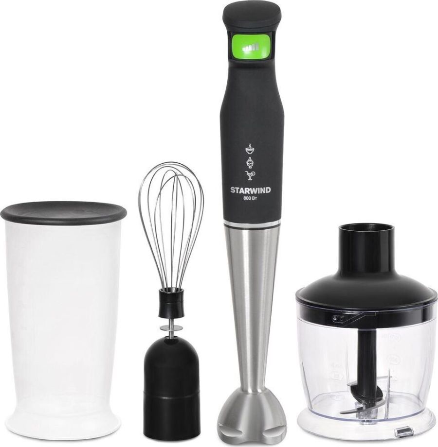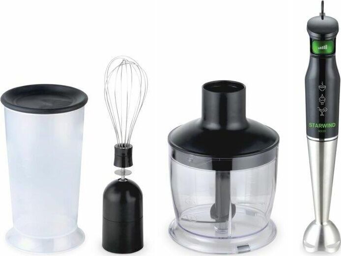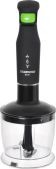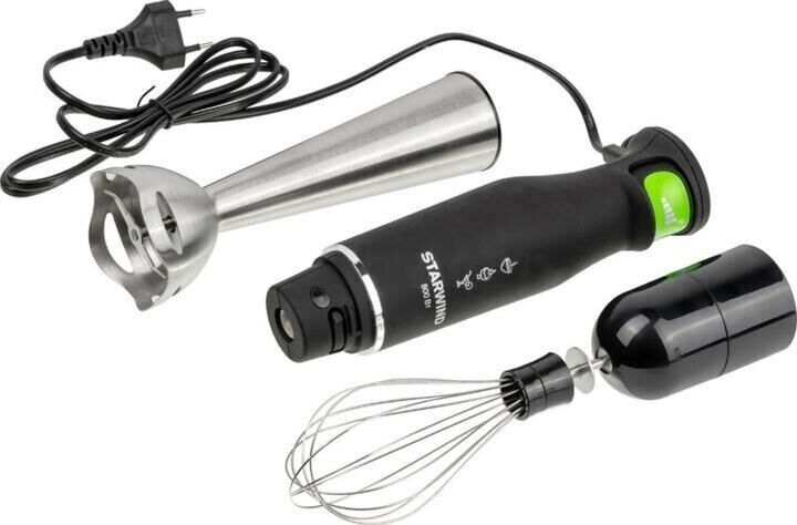 Блендер погружной. Мощность: 800 Вт, Бесступенчатый регулятор скорости, Регулировка скорости вращения, Импульсный режим, Режим измельчения, Электропитание от сети, Материал корпуса: пластик, Материал ножей: нержавеющая сталь, Материал погружной части: нержавеющая сталь, Длина сетевого шнура: 1 метр, В комплекте: Венчик для взбивания, Измельчитель, Мерный стакан, Цвет: черный/зеленый, Срок гарантии: 12 месяцев.