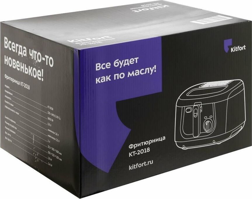 Объём масла 2.5 л. Мощность 1800 Вт. Управление электронное. Индикатор работы/нагрева есть. Регулировка температуры есть. Смотровое окно есть. Антипригарное покрытие есть. Фильтр против запаха есть. Материал корпуса пластик. Длина шнура 69 см.. Цвет черный. Размеры 310 х 292 х 208 мм. Вес 1.88 кг.