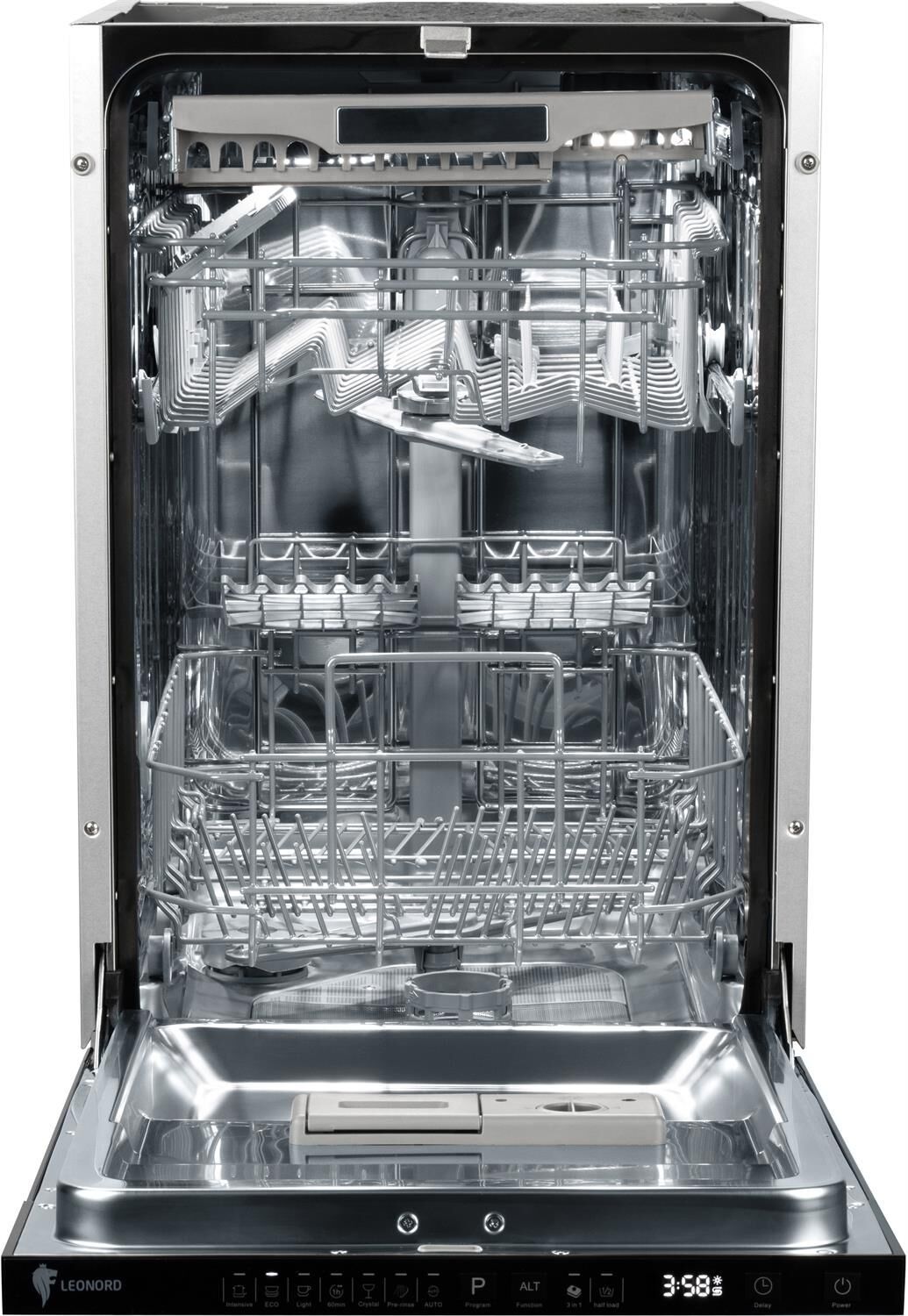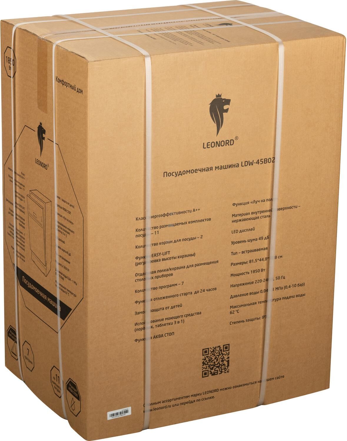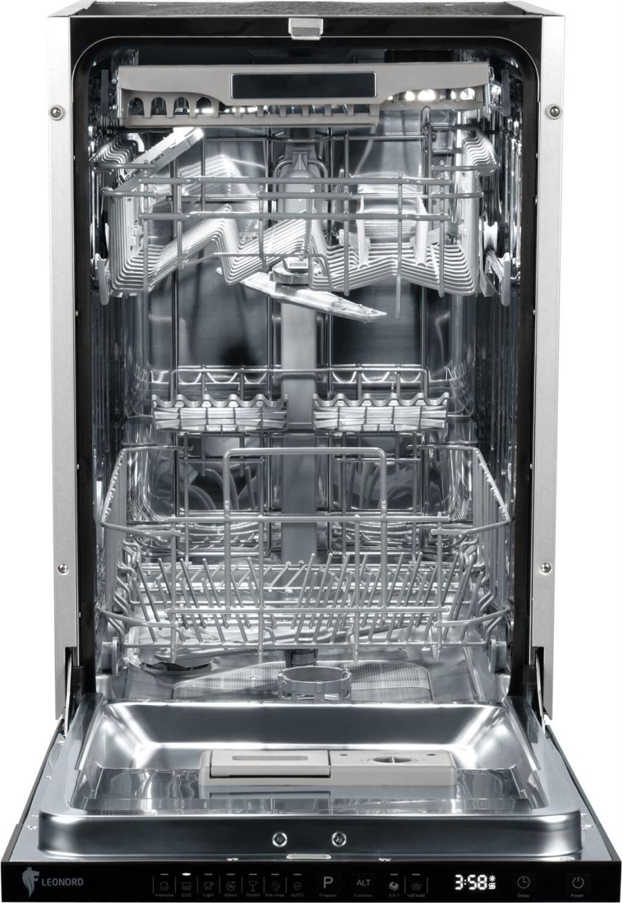 Тип - встраиваемая Мощность 1850 Вт LED дисплей Мотор - UM (неинвенторный) Кол-во размещаемых комплектов посуды - 11 Кол-во корзин для посуды - 3 7 программ: Интенсивная, Эко, Хрупкая посуда, Обычная 60 минут, Замачивание, Тонкое стекло, Автоматическая Половинная загрузка Корзина с механизмом Easy-lift Защита от протечек АКВА СТОП Функция "Луч на полу" Защита от детей Использование моющего средства (порошок, таблетки 3 в 1) Отсрочка запуска до 24 часов Внутренний материал - нержавеющая сталь Максимальная температура подачи воды 62 °C Давление воды 0,04-1 МПа (0,4-10 бар) Класс энергоэффективности А++ Уровень шума 49 Дб Степень защиты IPx2 Размеры 81,5*44,8*55,8 Гарания 1 год