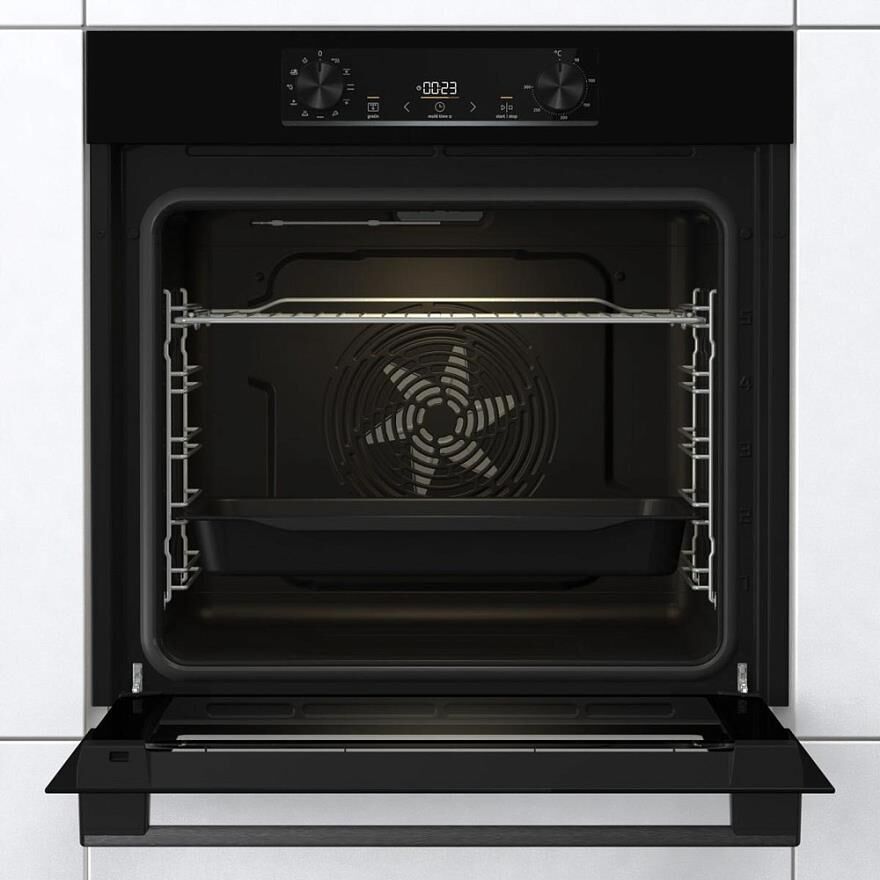 (ВxШxГ)59.5 х 59.5 х 56.4см.Объем рабочей камеры, л 77.Цвет черный.Цвет ручки дверцы темная нержавеющая сталь.Управление механическое.Программатор электронный сенсорный IconLED.Тип переключателей поворотные.Таймер с функцией отключения.Количество режимов 11.Большой гриль. Тип очистки паром AquaClean.Внутреннее покрытие духовки пиролитическая эмаль SilverMatte.Съемный стеклопакет.Система охлаждения DC+.Термоэлектрический предохранитель