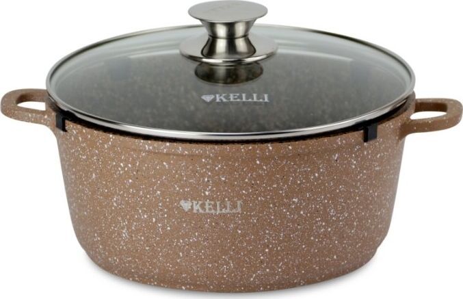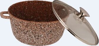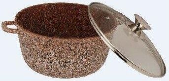 Кастрюля с гранитным покрытием Диаметр: 28см. Объем: 7 л. Материал: алюминий Стеклянная крышка с паровыпуском В комплекте силиконовые насадки на ручки Пригодна для всех видов плит в том числе для индукционной
